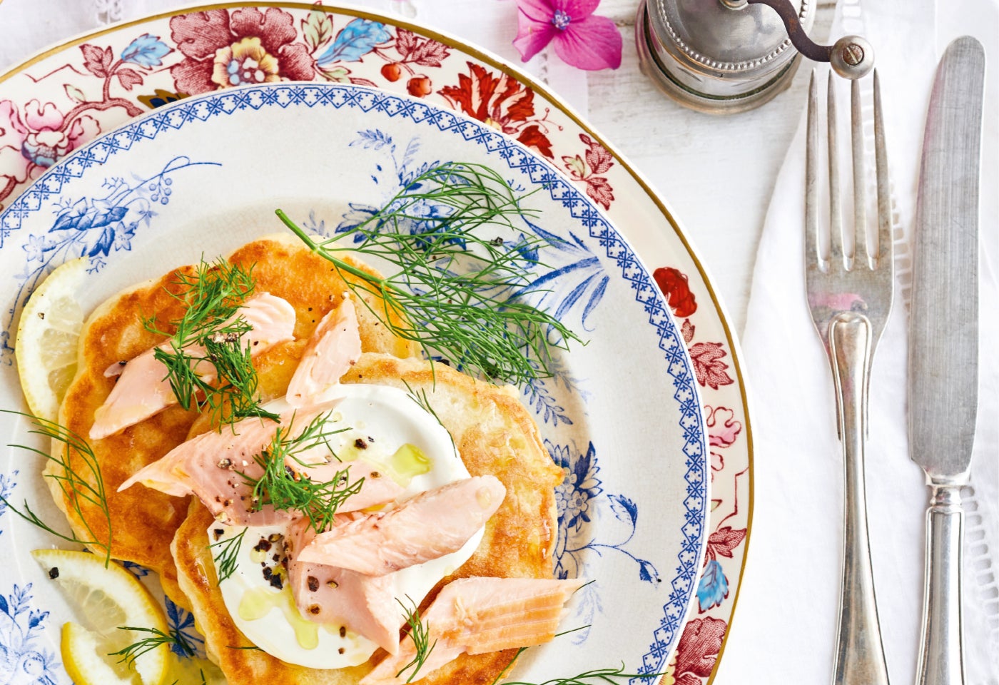Erdäpfel-Pancakes mit Räucherforelle