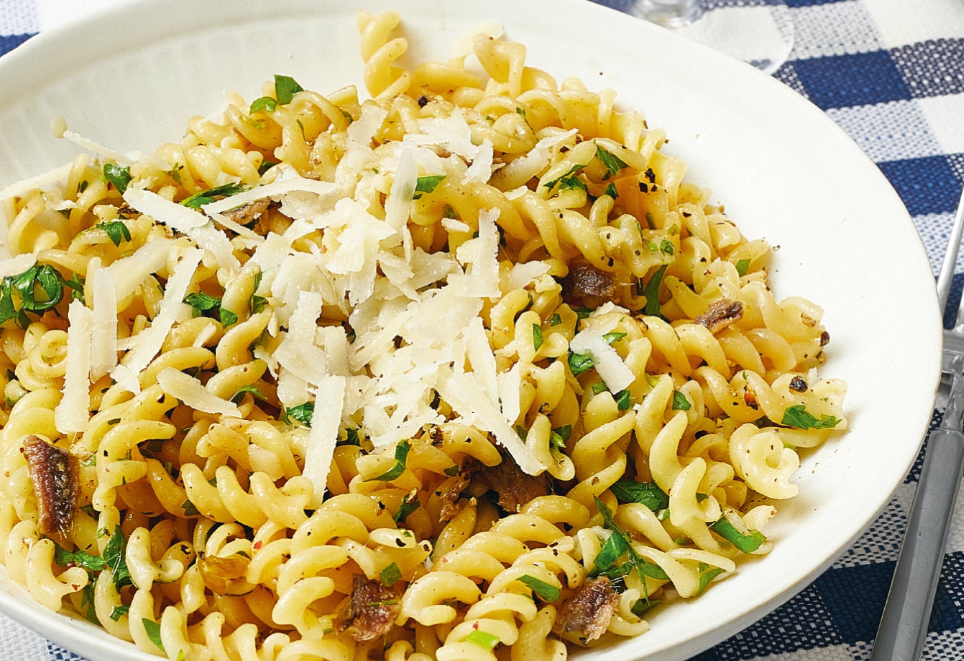 Schnelle Pasta mit Kapernsardellen und Grana