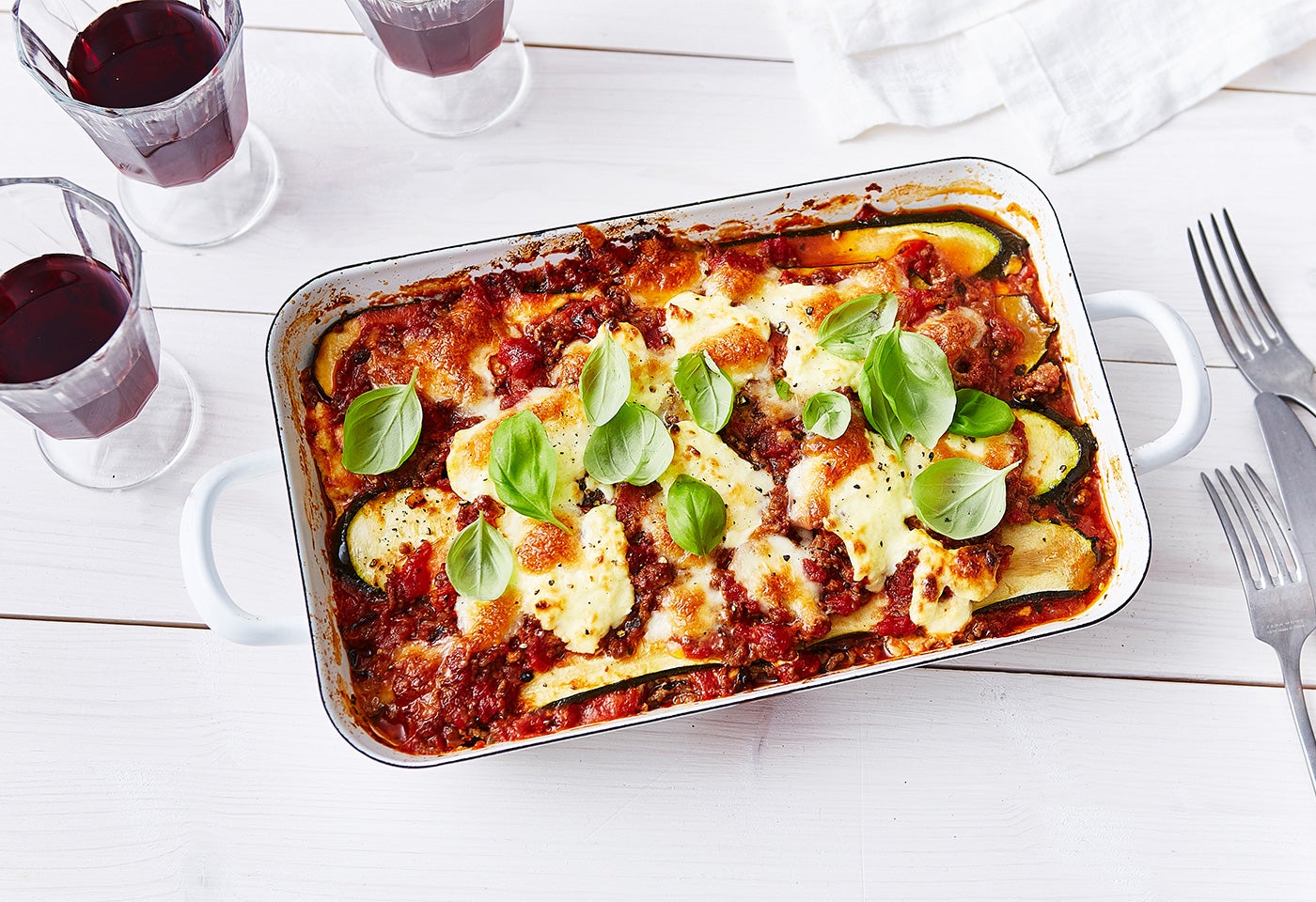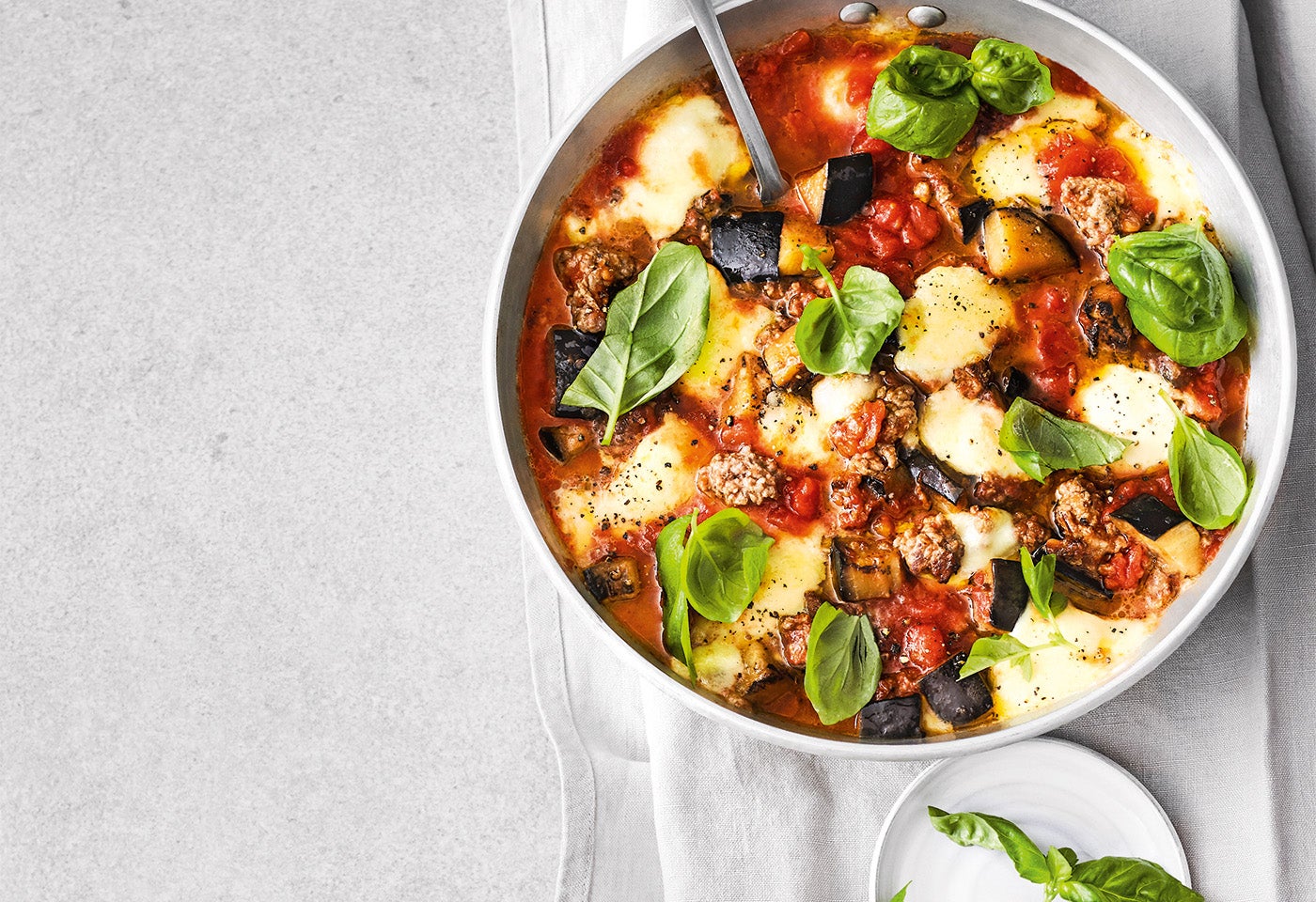 Faschiertes-Melanzani-Pfanne mit Mozzarella