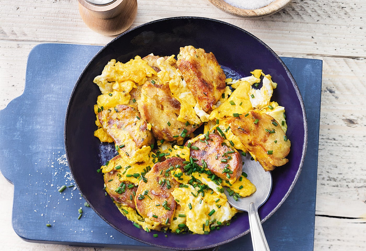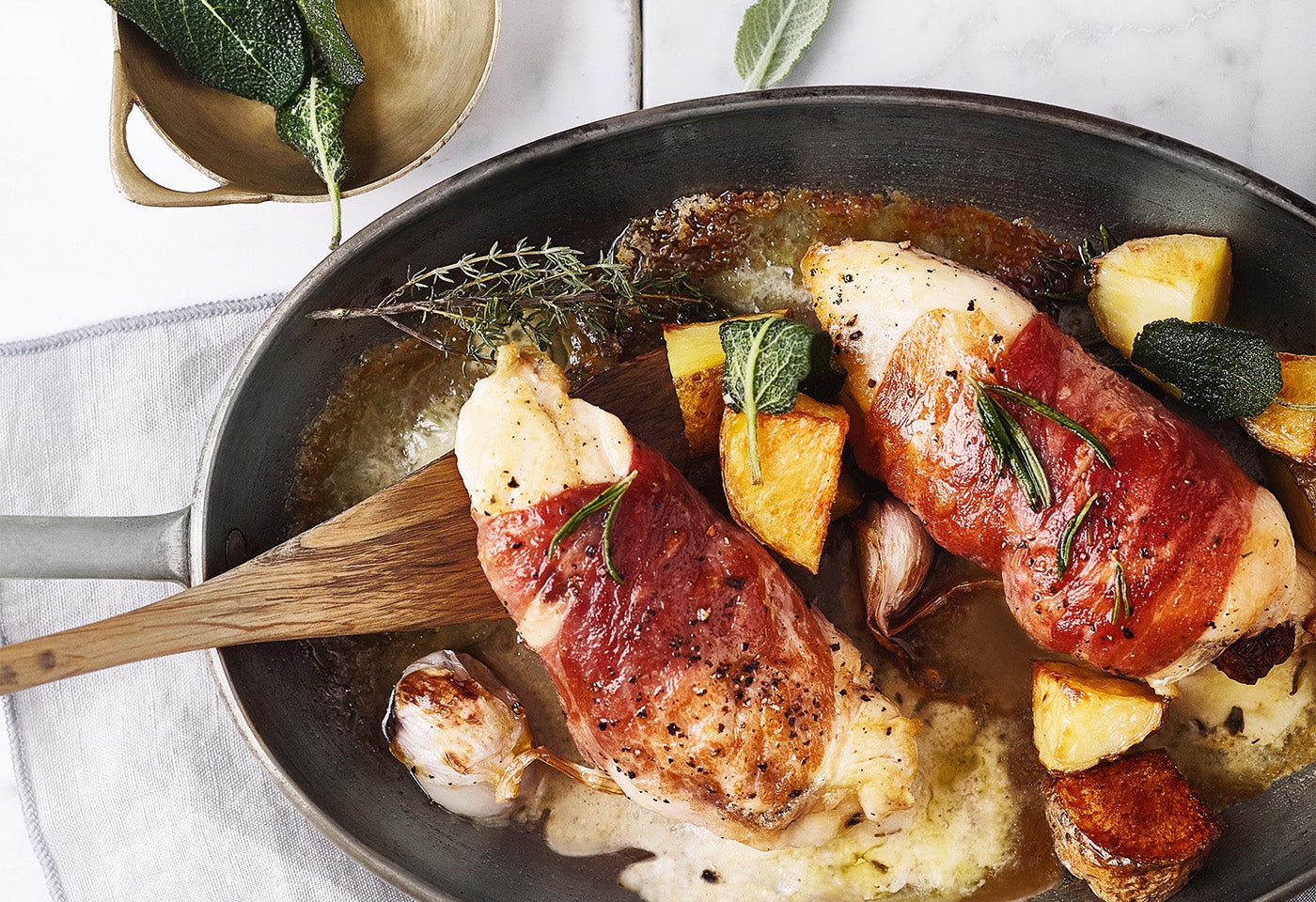 Hühner-Rouladen mit Goudafüllung und Braterdäpfeln