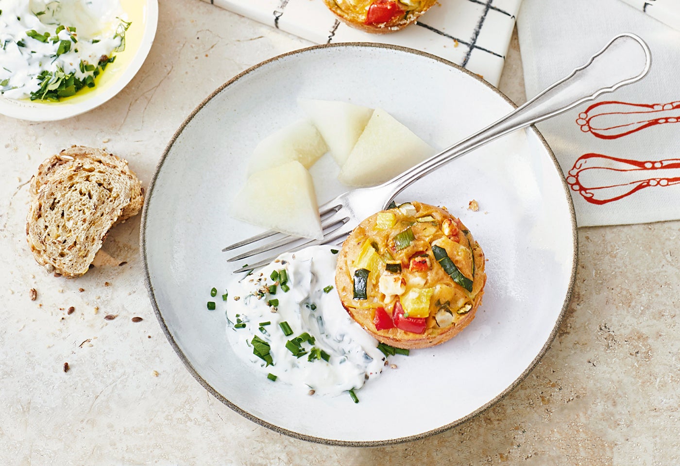 Gemüse-Feta-Buchweizenmuffins mit Honigmelone