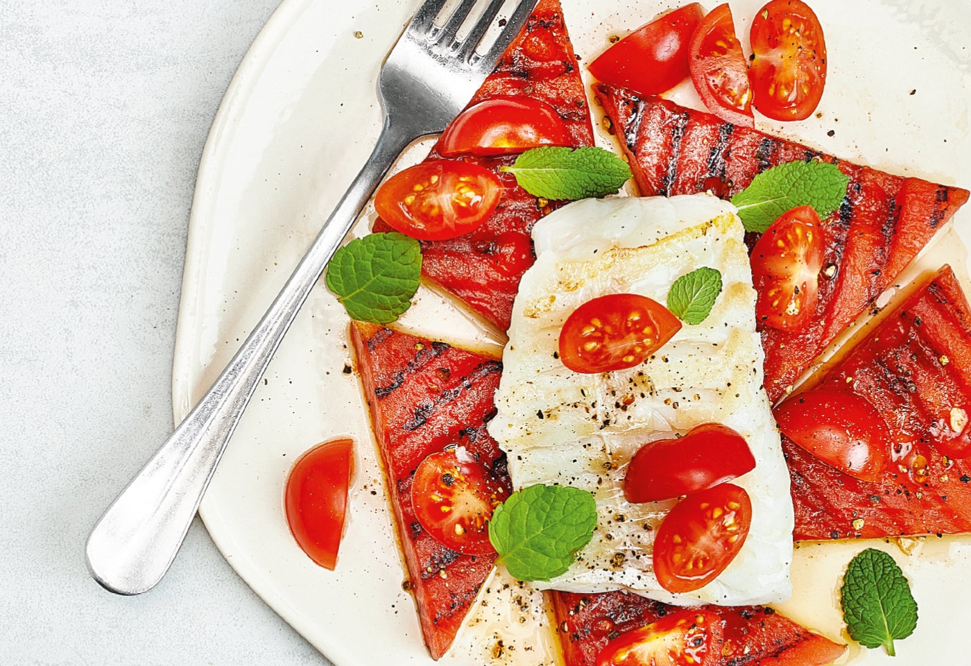 Gegrillte Melone mit Kabeljau