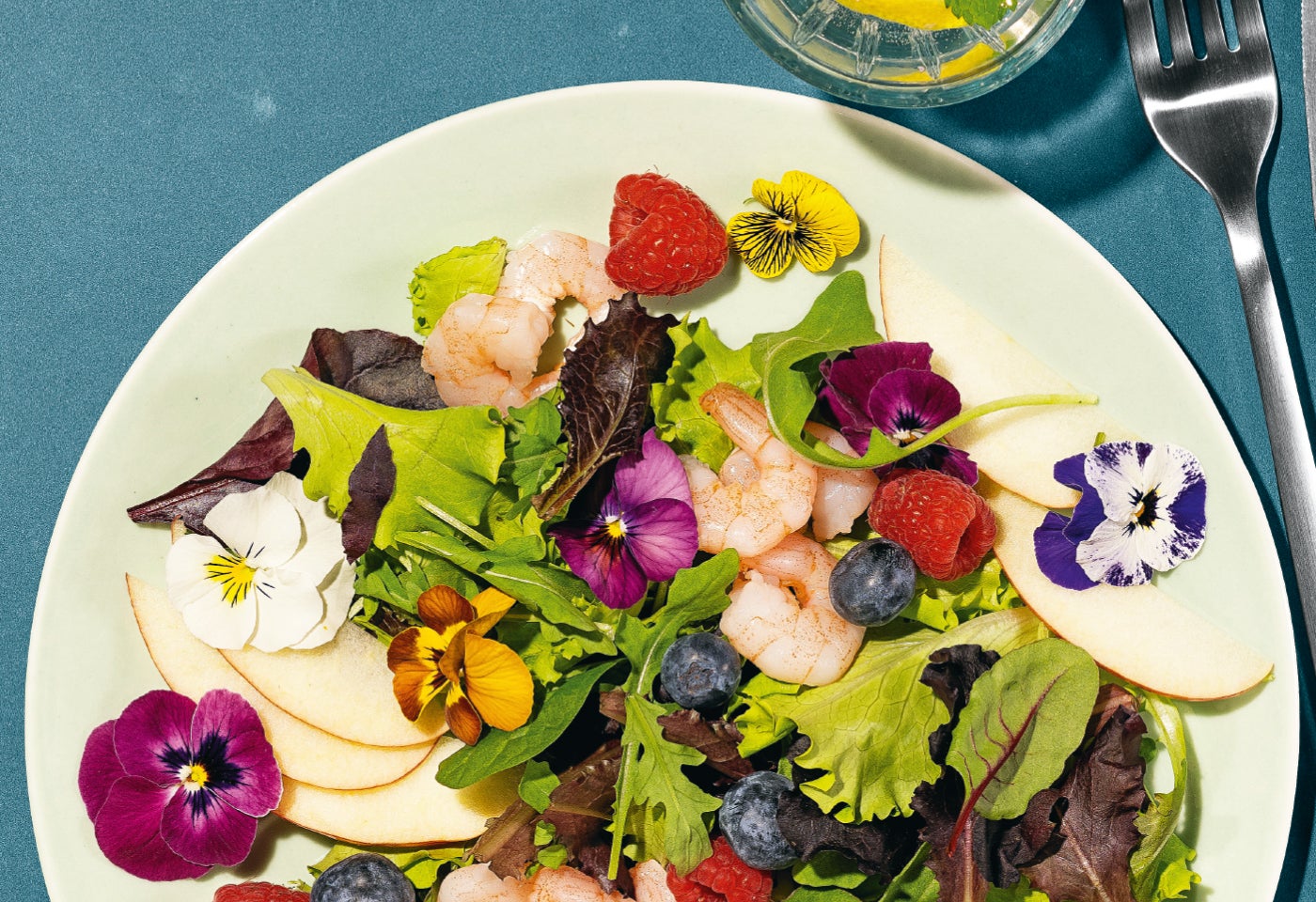 Fruchtiger Blütensalat mit Garnelen