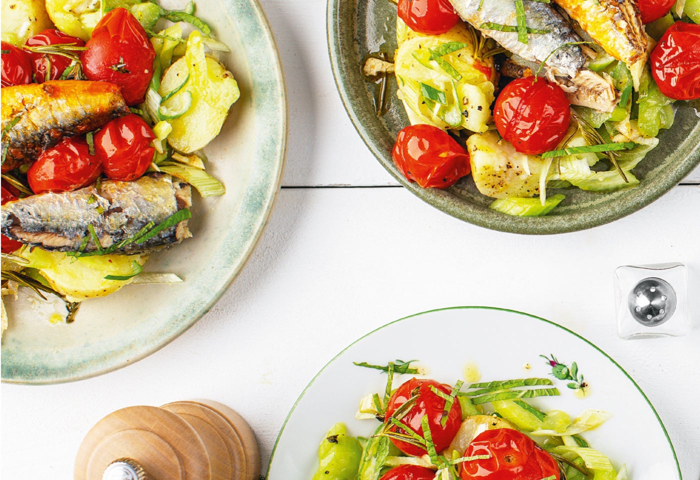 Erdäpfel-Ofentomaten-Salat mit Sardinen
