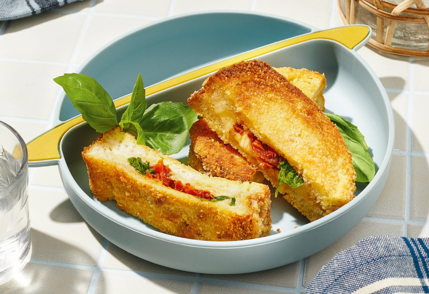 Mozzarella in Carrozza mit getrockneten Tomaten