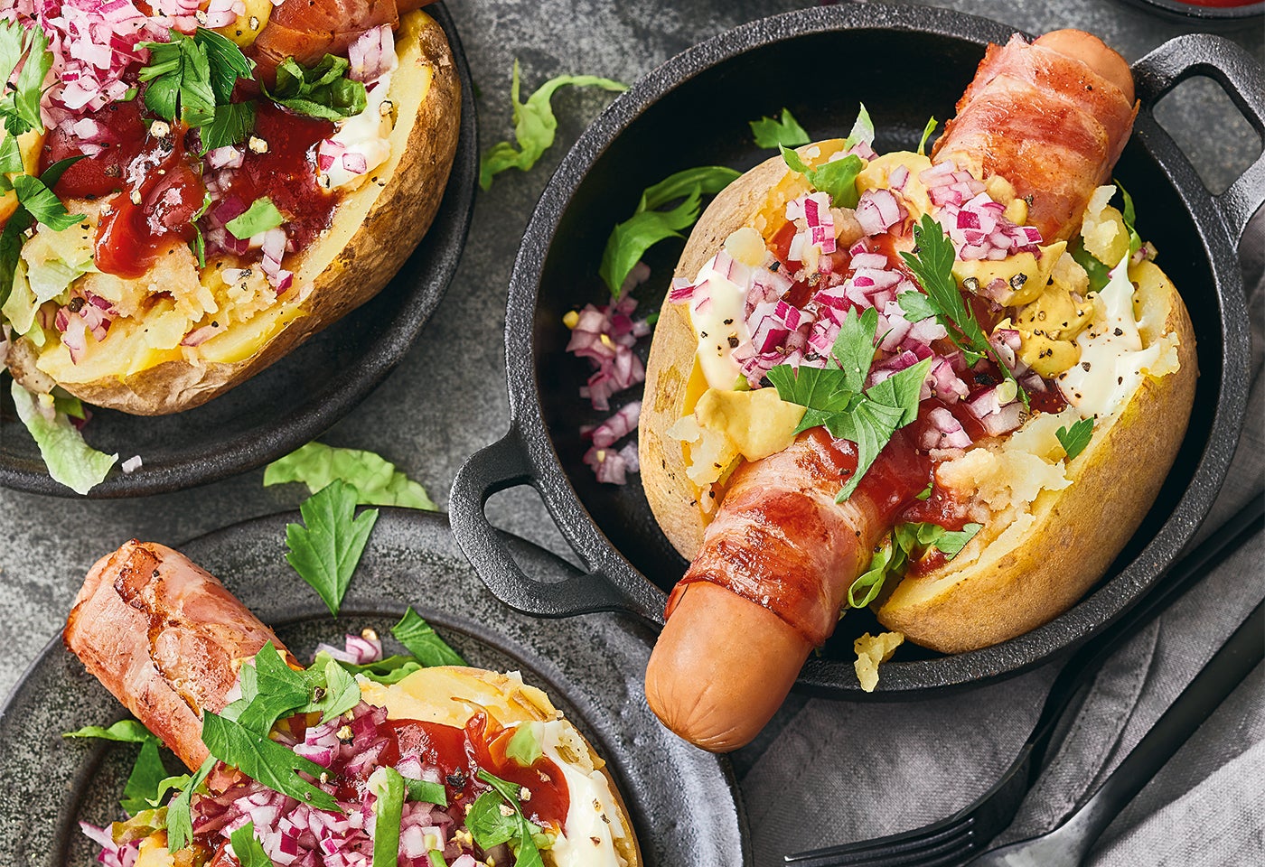 Loaded Potatoes mit Berner Würsteln