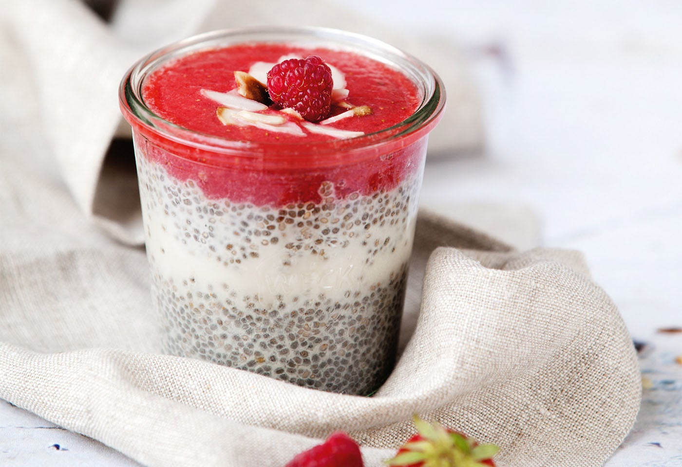 Chiasamen-Creme mit Mandelmilch und Beerenmus