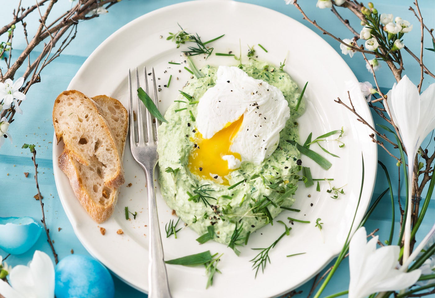 Pochierte Eier mit Kräutersauce