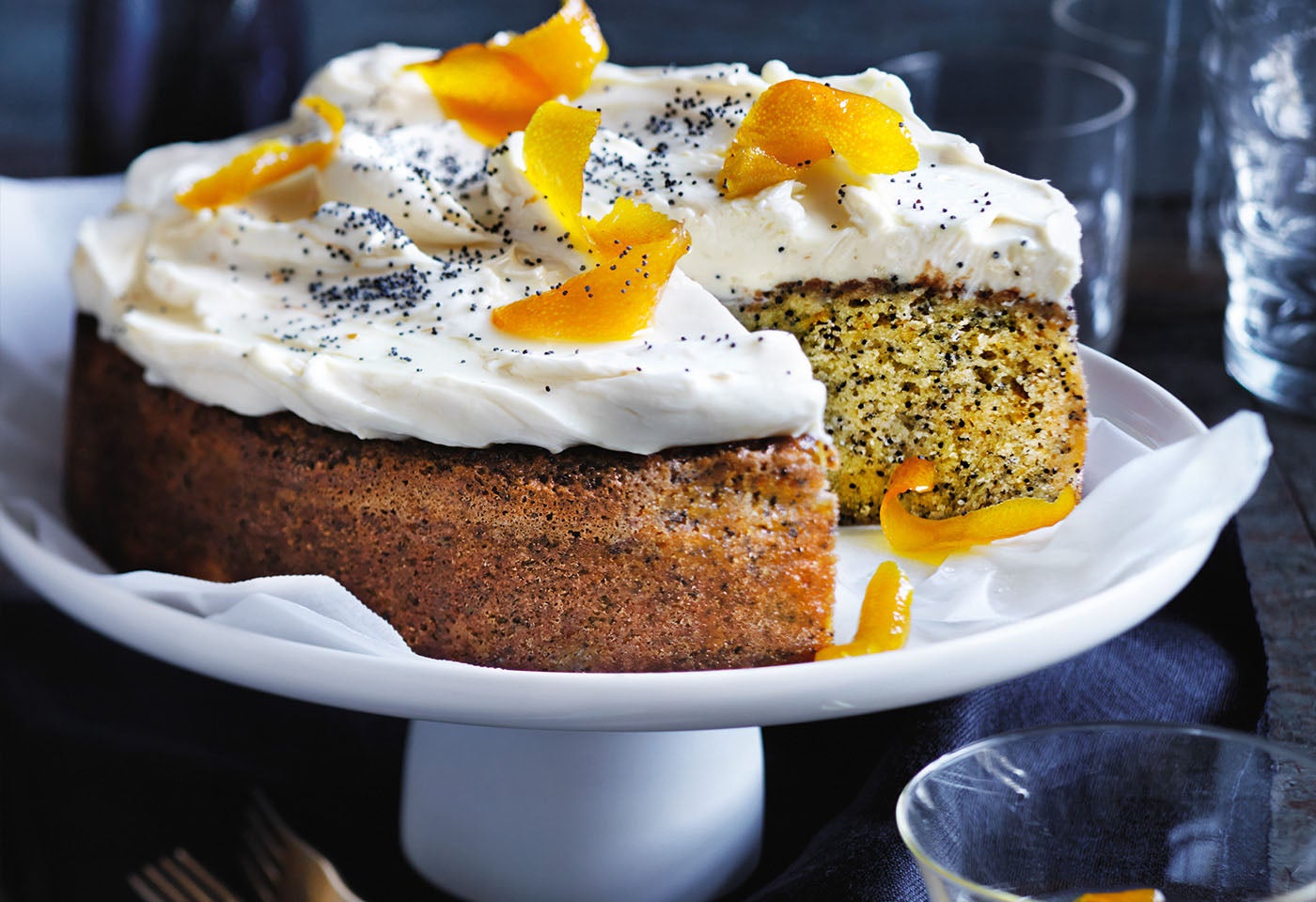 Orangen-Mohnkuchen mit Frischkäse-Frosting