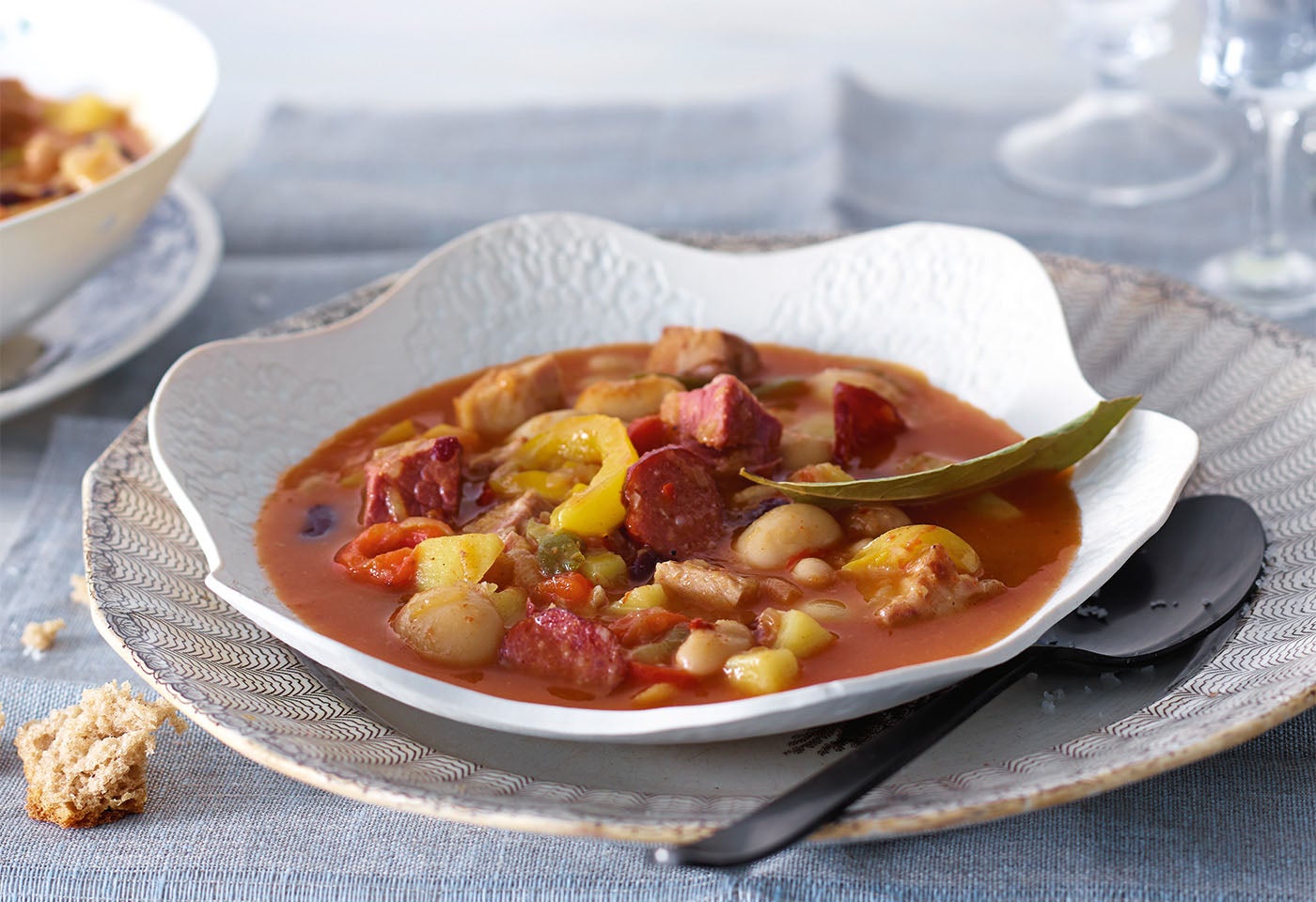 Bohnen-Spinat-Knoblauch-Eintopf mit Speck