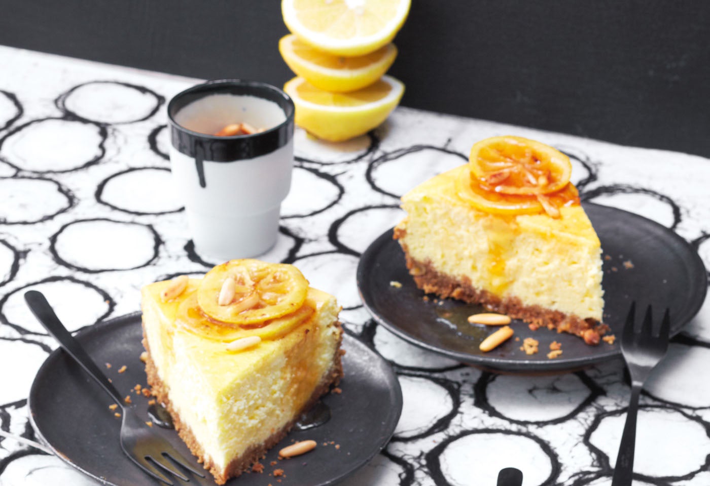 Ziegenkäse-Topfenkuchen mit Karamell-Zitronen
