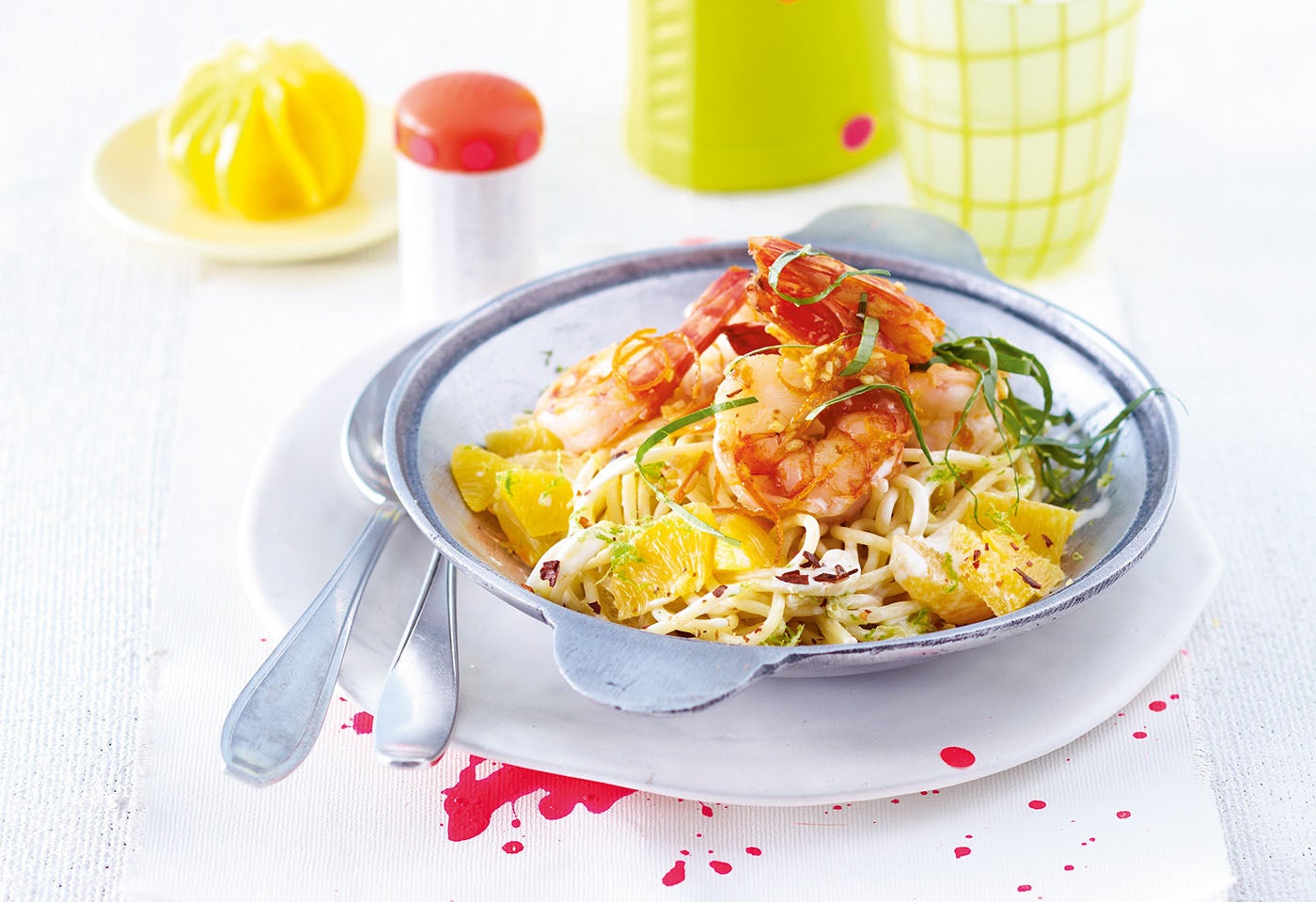 Spaghetti al Limone in Kokosmilch mit Garnelen