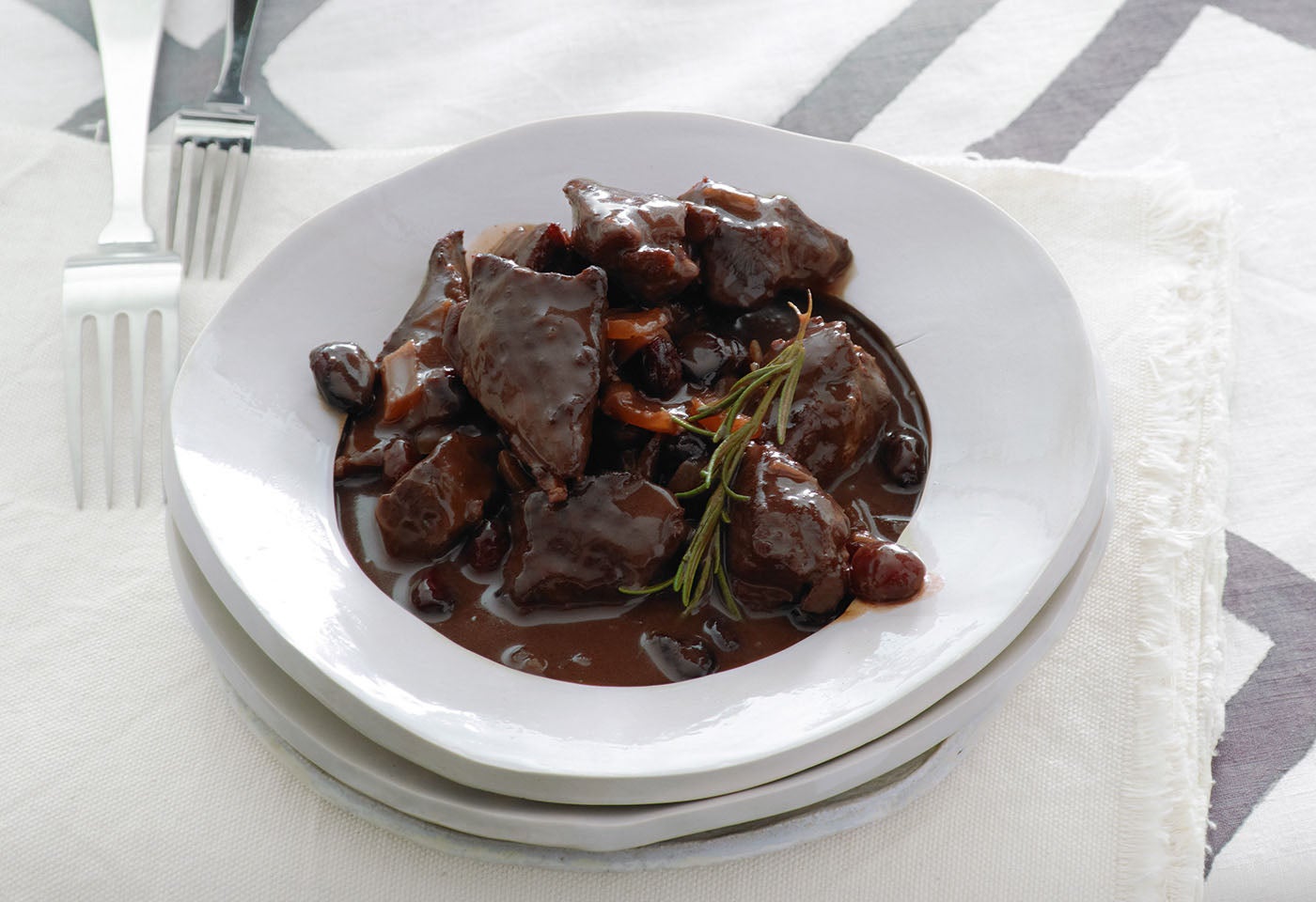 Lammgulasch mit Portwein-Cranberry-Sauce und Erdäpfelpüree