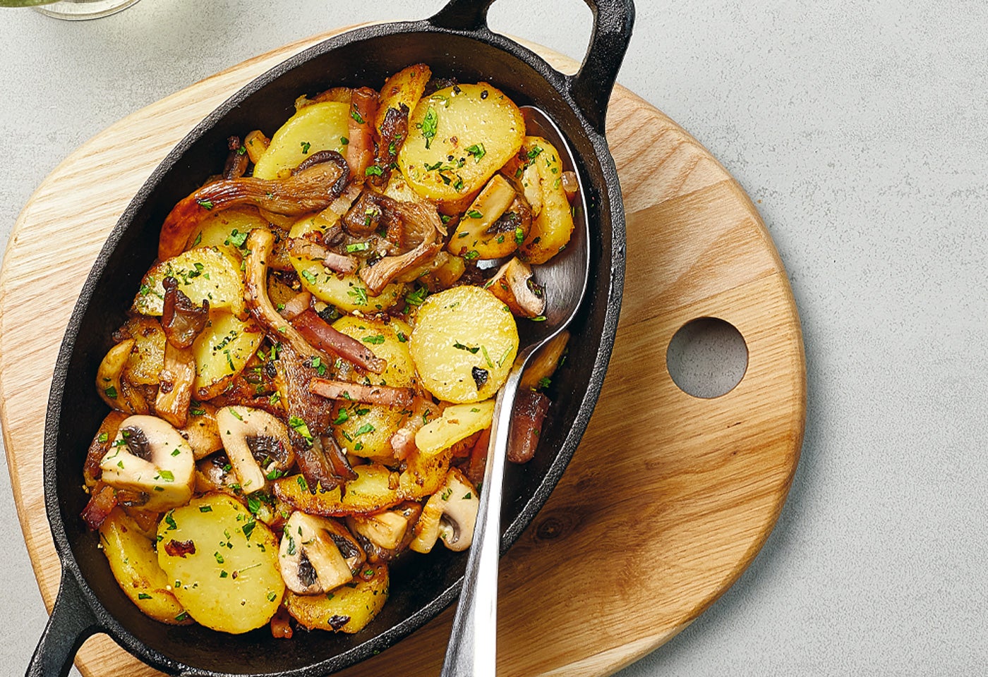 Erdäpfel-Pilz-Gröstl mit Spiegelei