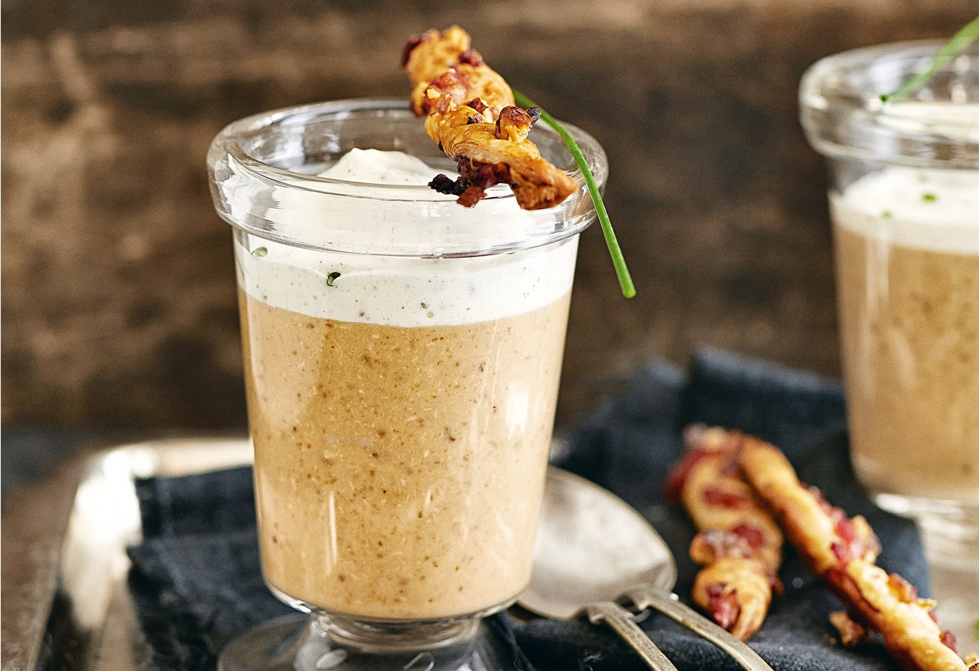 Maronicremesuppe mit Prosciutto-Käse-Stangerln
