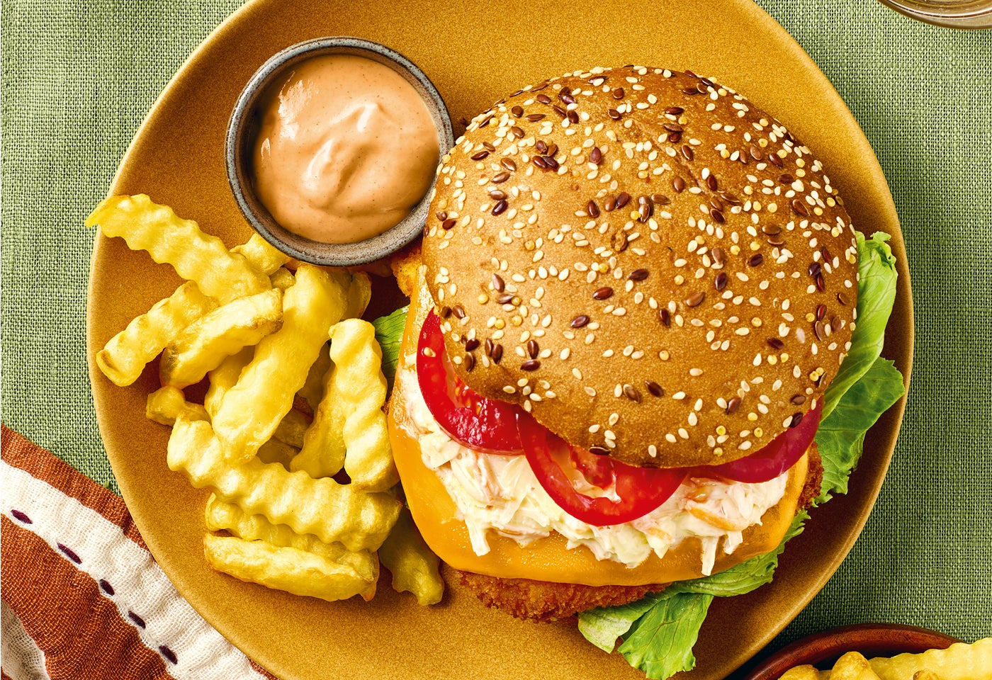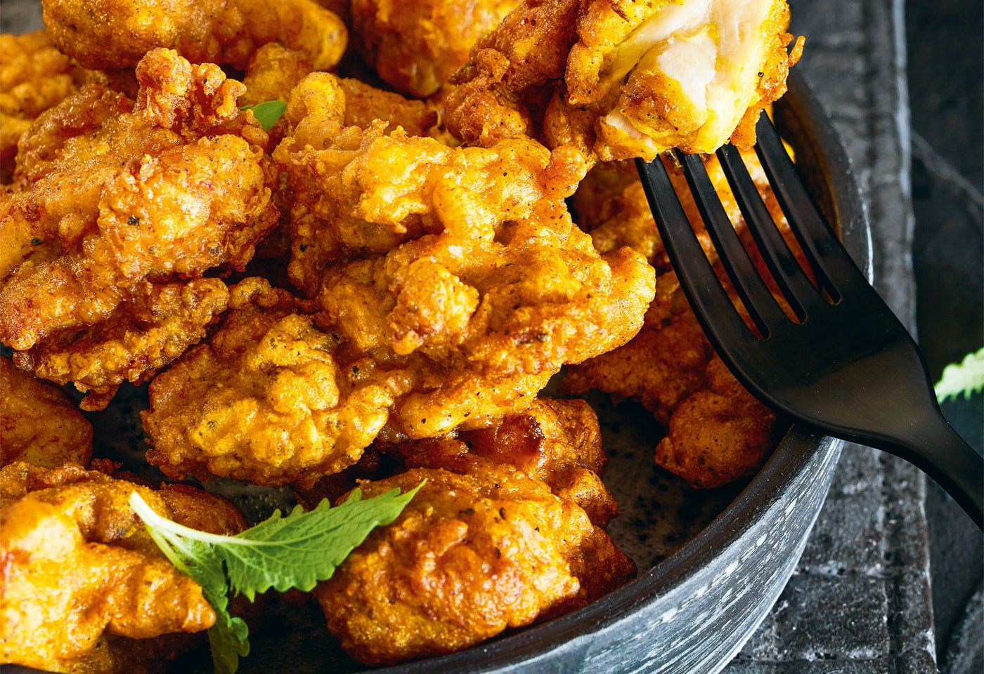 Kerala Fried Chicken mit Gurkenpickles und Safran-Curry-Mayonnaise