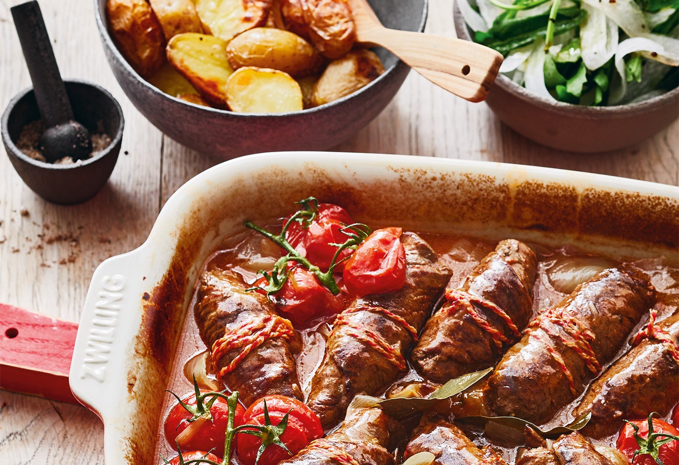 Pilz-Rindsrouladen mit Rettich-Rucola-Salat