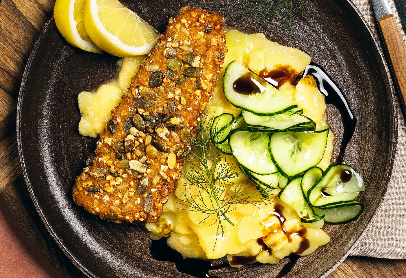 Kürbiskern-Backfisch mit Erdäpfel-Gurken-Salat