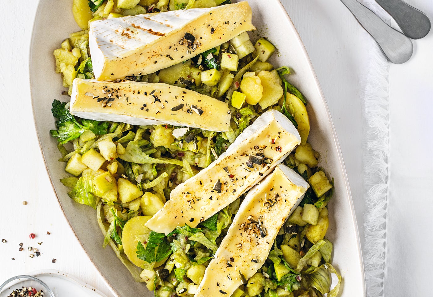 Lauwarmer Erdäpfel-Endivien-Salat mit Äpfeln und Brie
