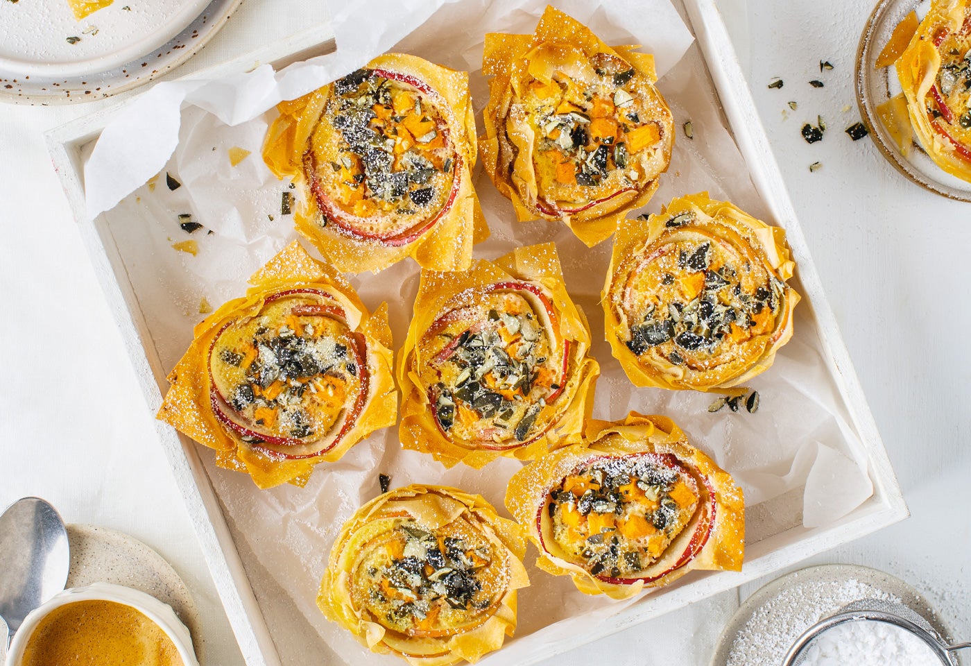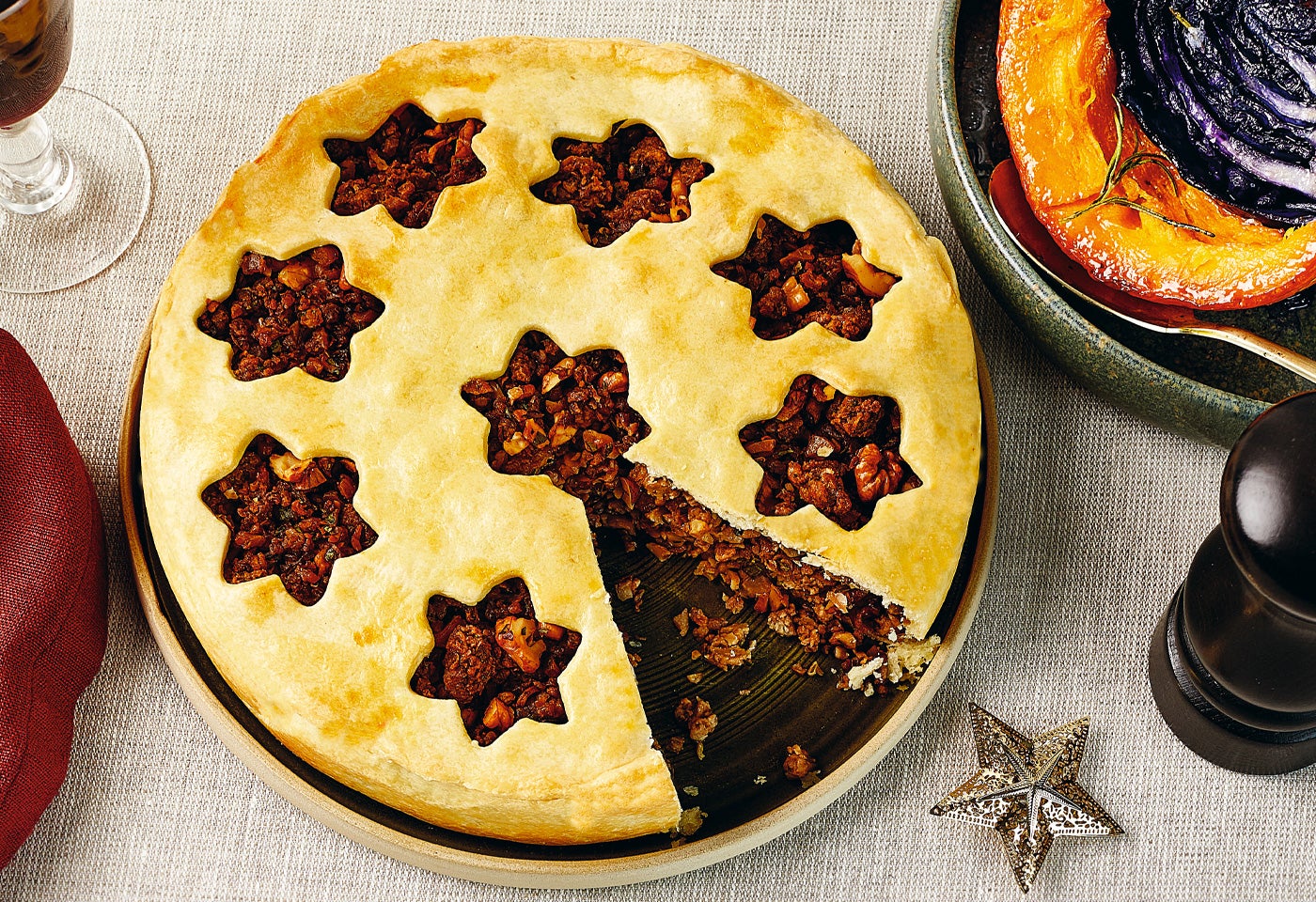 Pflanzlicher Wellington Pie mit Kürbis-Rotkraut-Gemüse
