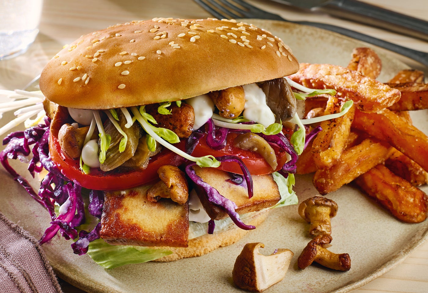 Pilz-Tofu-Burger mit Rotkraut-Slaw
