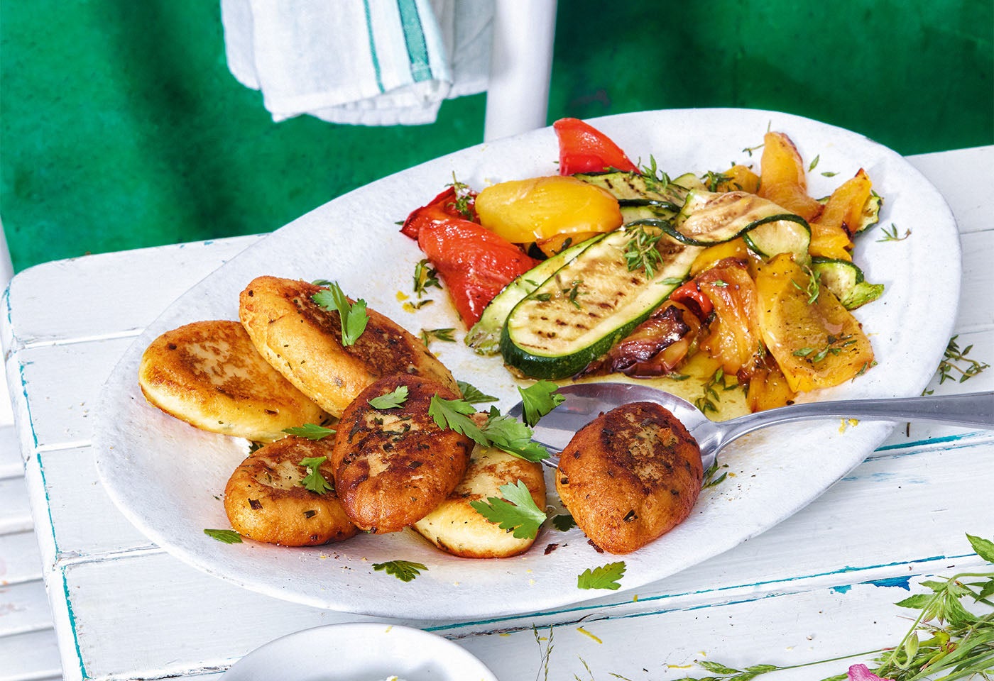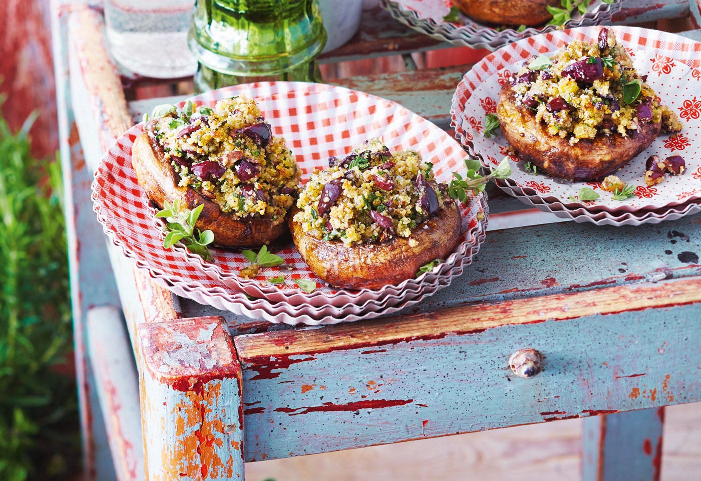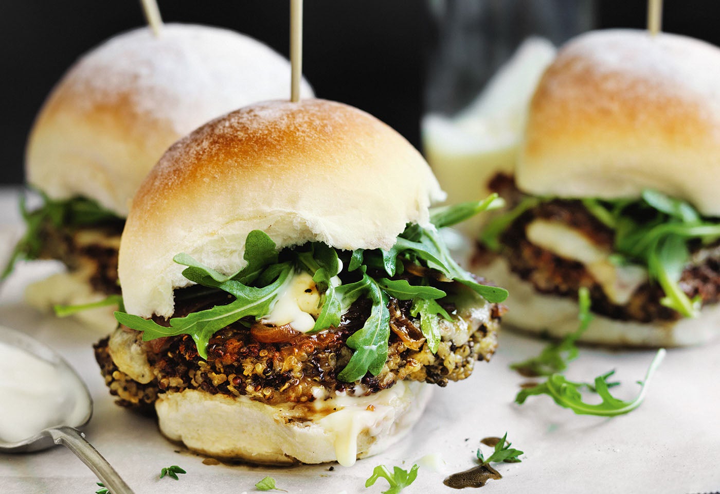 Quinoa-Burger mit in Bier geschmorten Zwiebeln