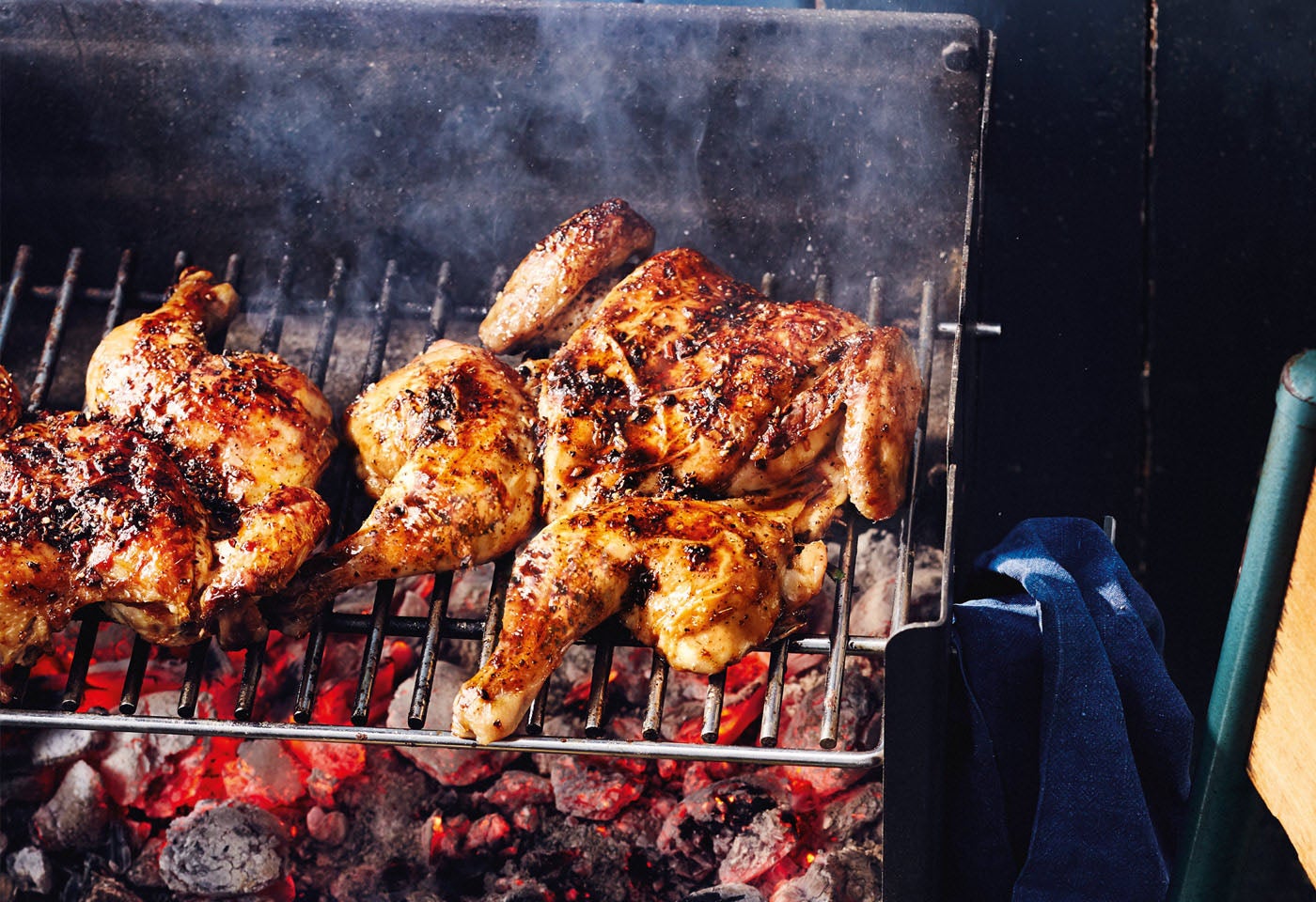 Butterfly-Hendl mit Apfelketchup und Salat im Pitabrot