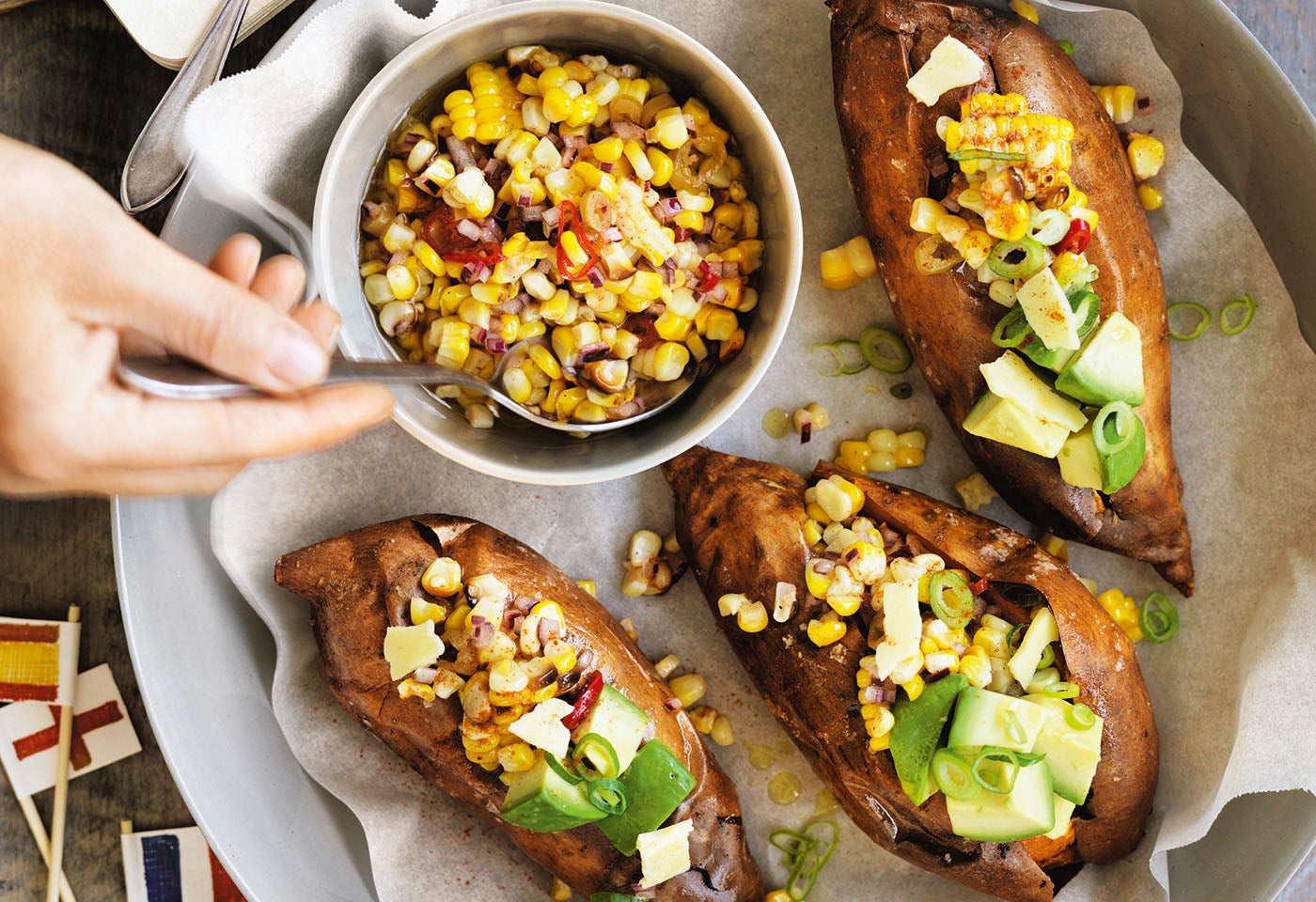 Ofen-Süßkartoffeln mit Mais-Salsa