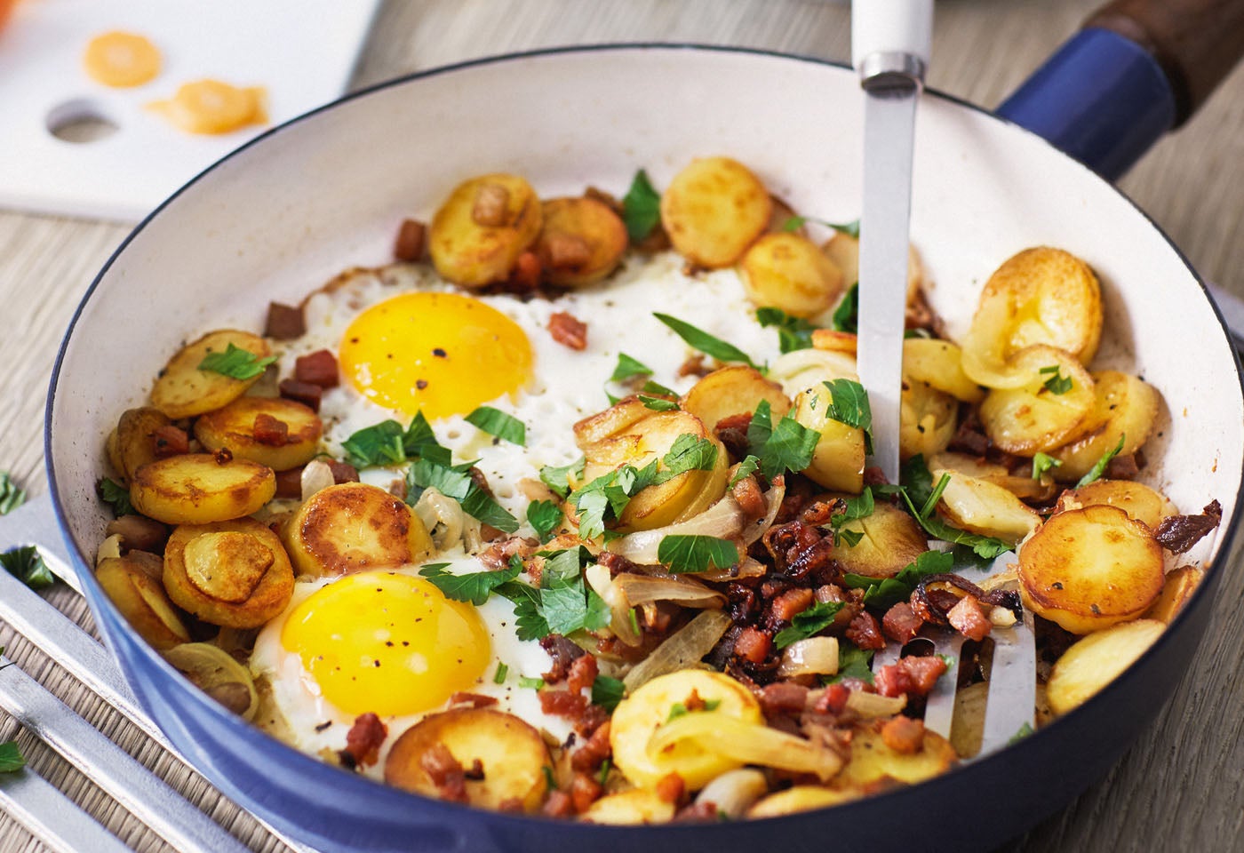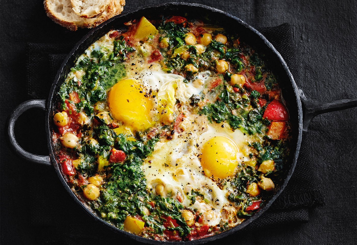 Spinat-Kichererbsen-Pfanne mit Eiern