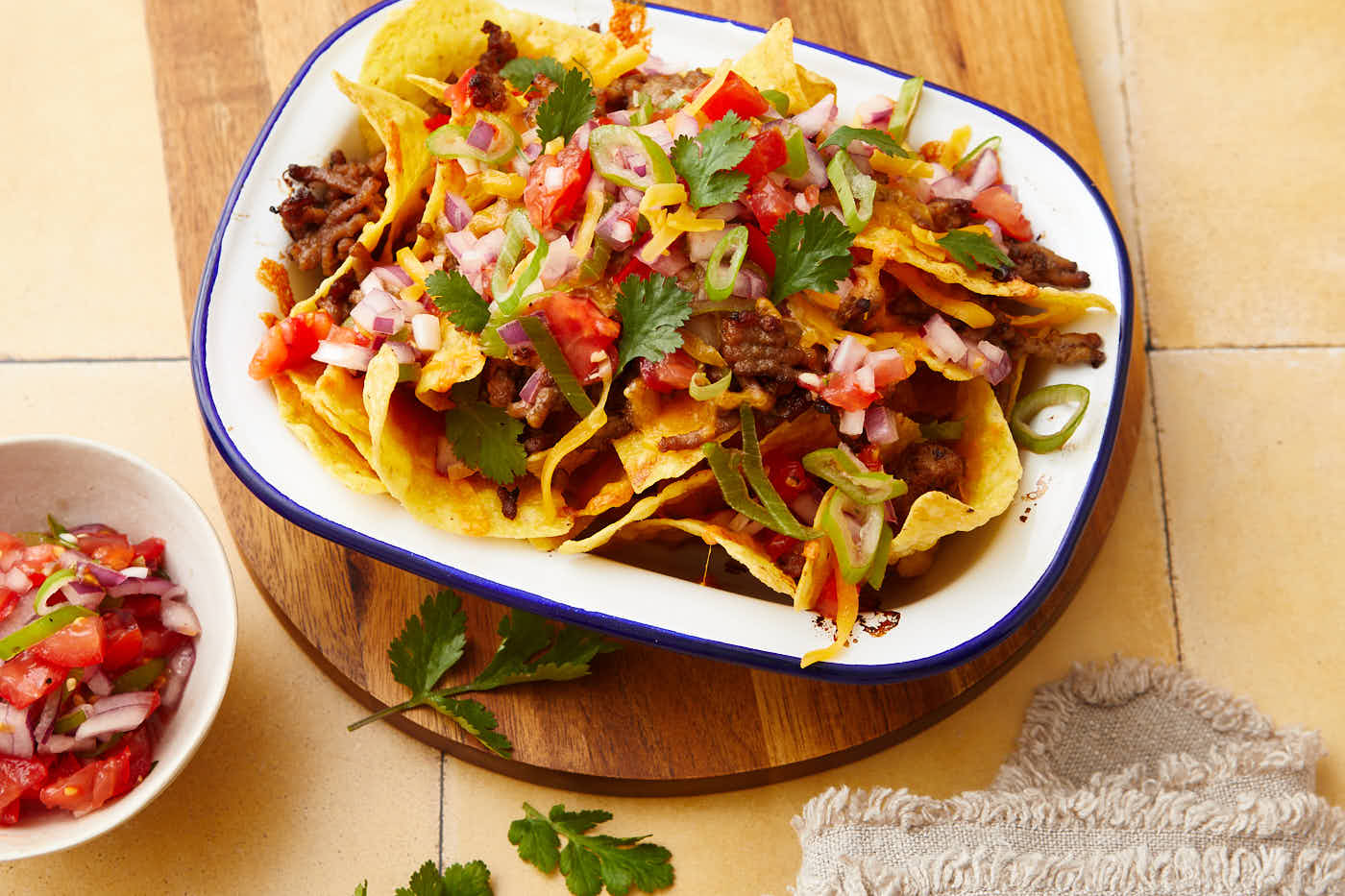 Überbackene Tortilla-Chips mit Faschiertem und Tomatensalsa