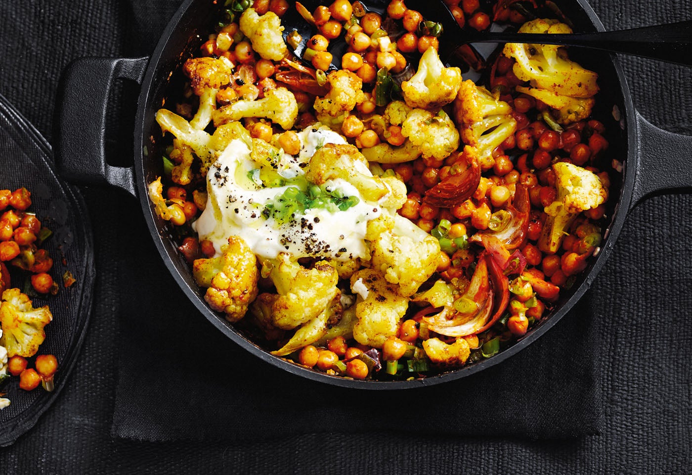 Gebratener Karfiol mit Kichererbsen und Joghurt