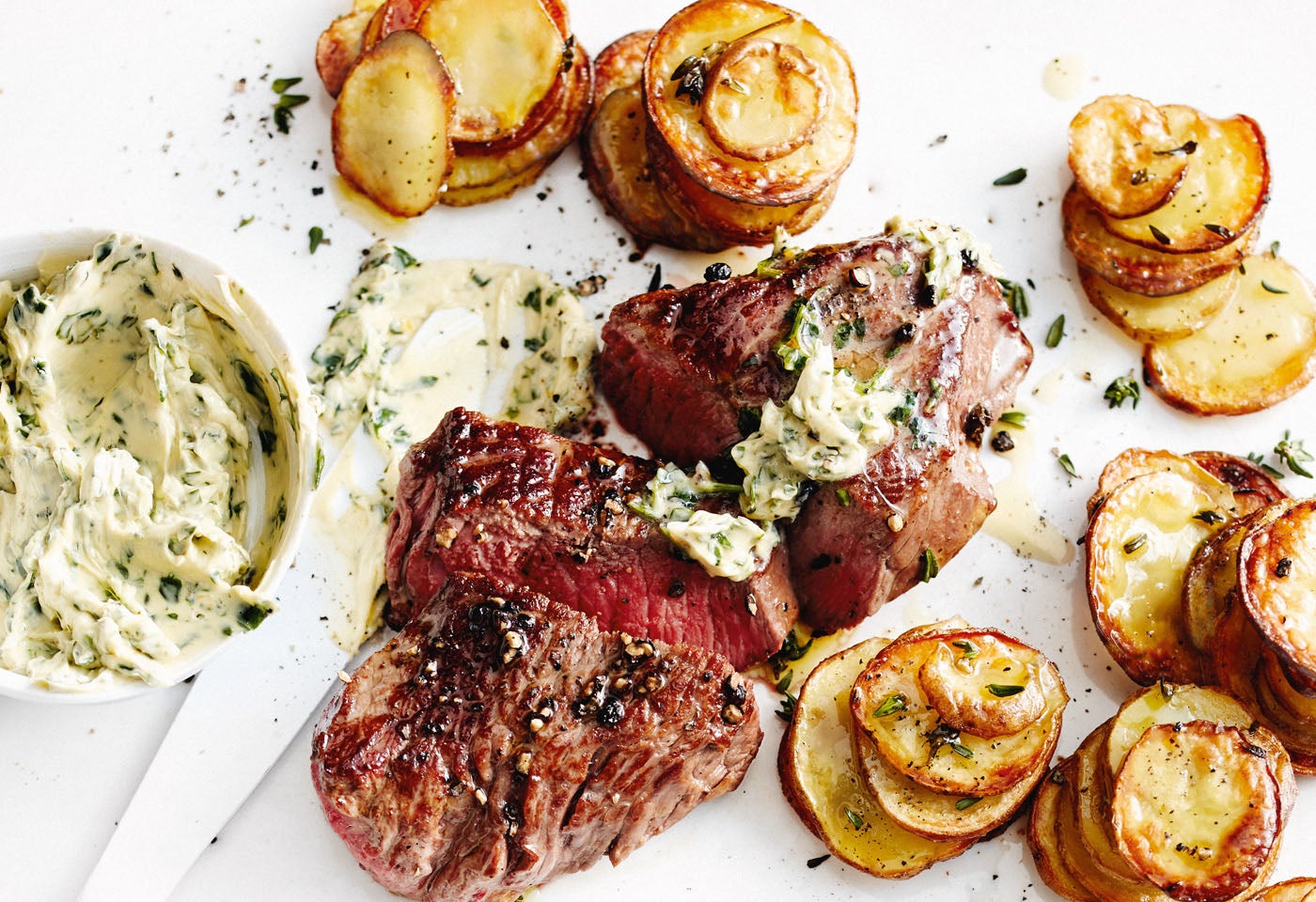 Rindersteak mit Erdäpfeln und Kräuterbutter