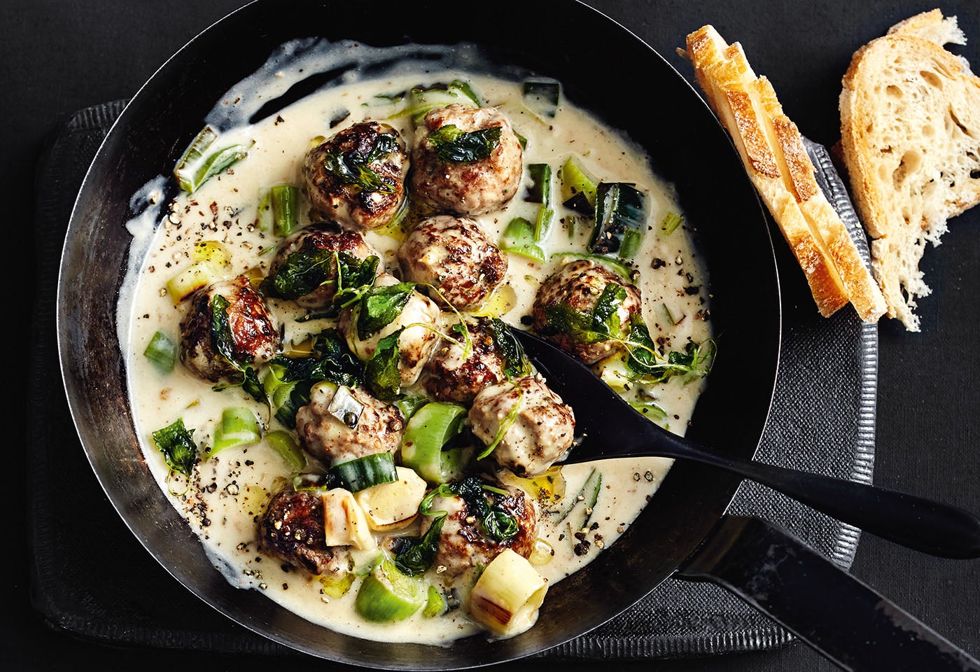 Faschierte Bällchen mit Lauch-Obers-Sauce