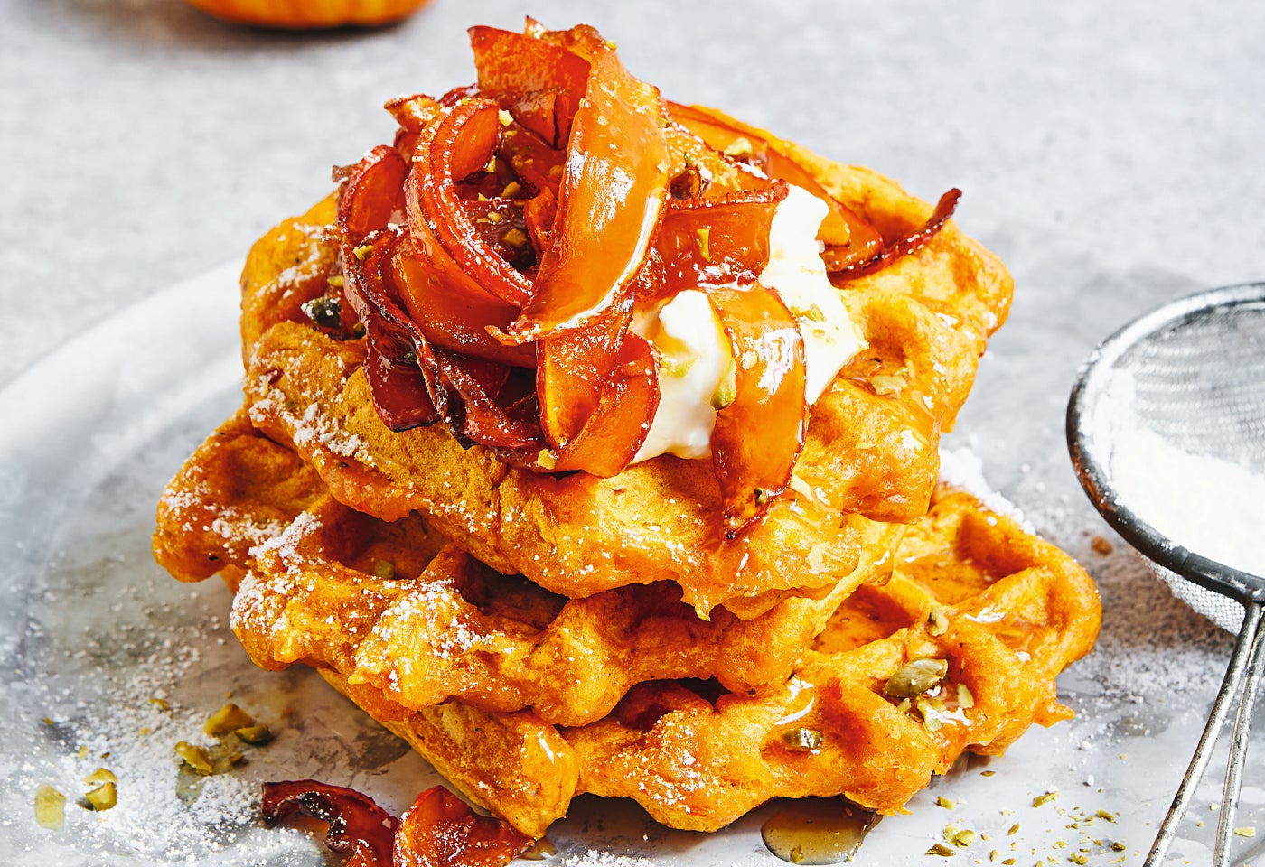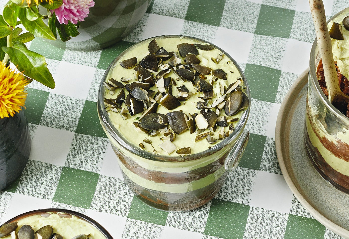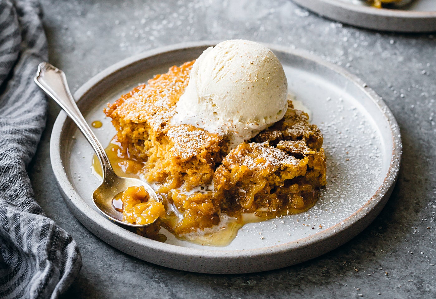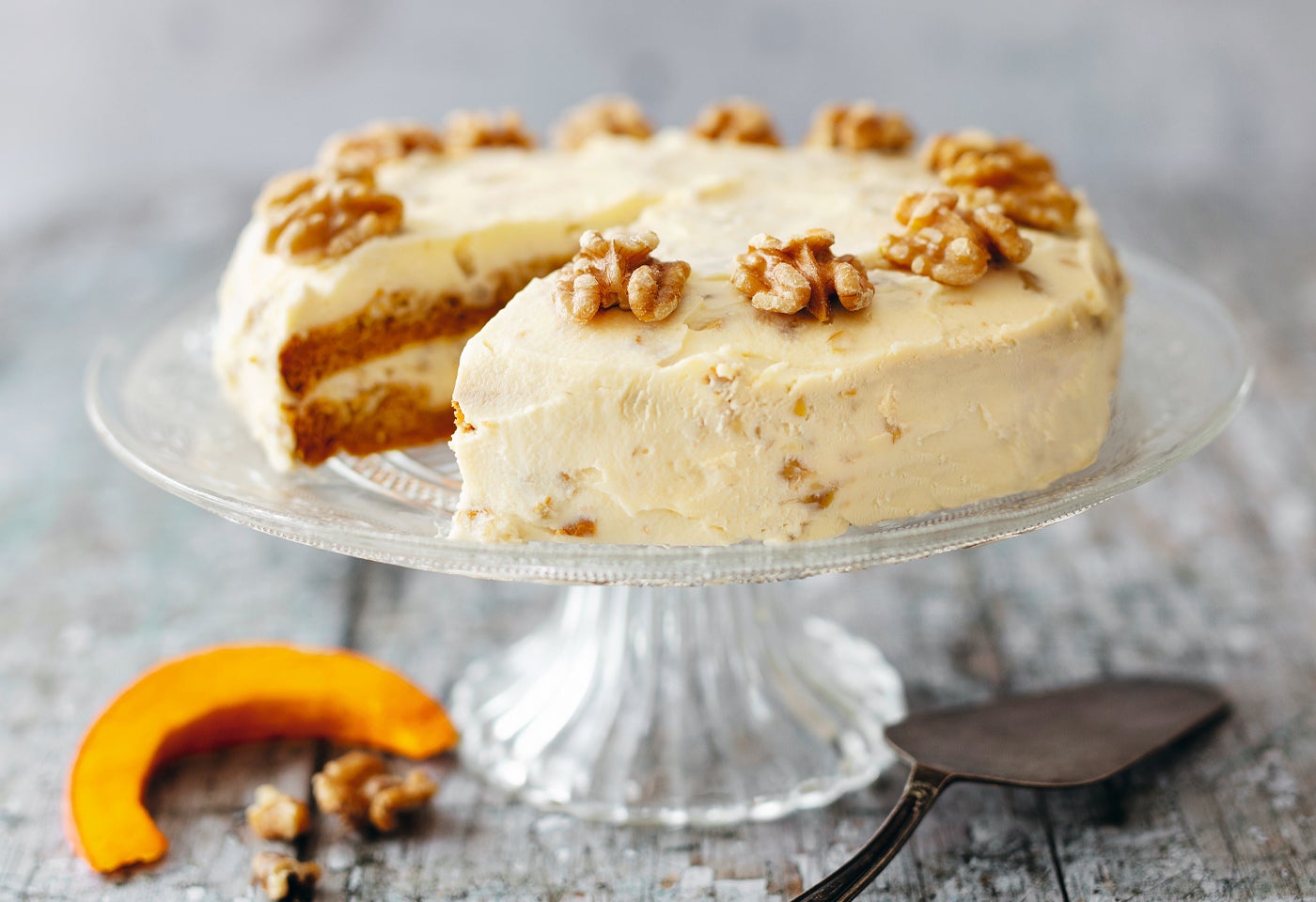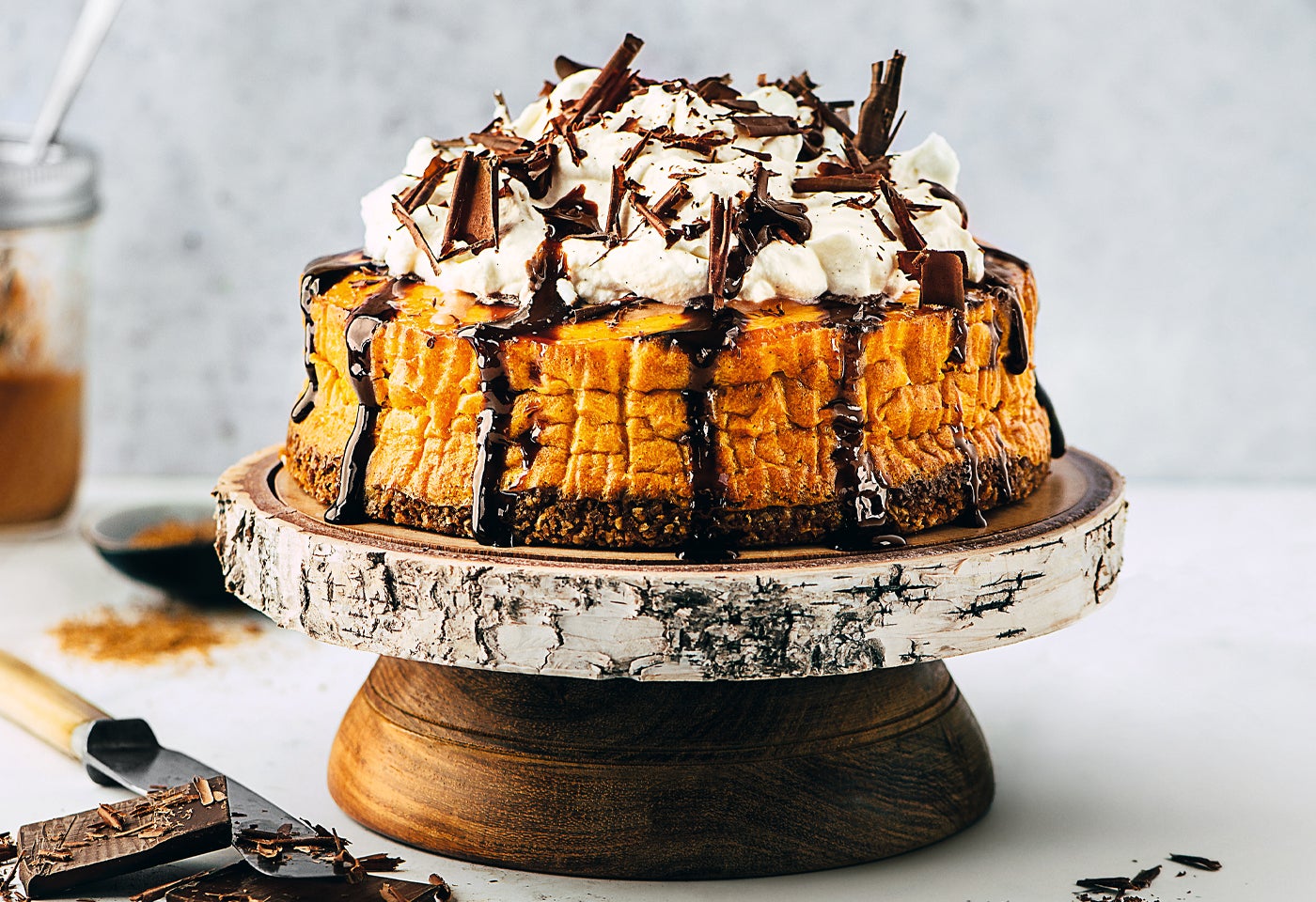 Kürbis-Topfenkuchen mit Schoko-Karamellsauce