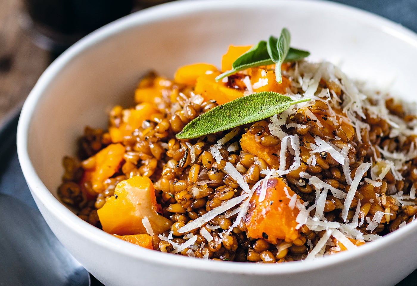 Dinkelrisotto mit geröstetem Butternusskürbis
