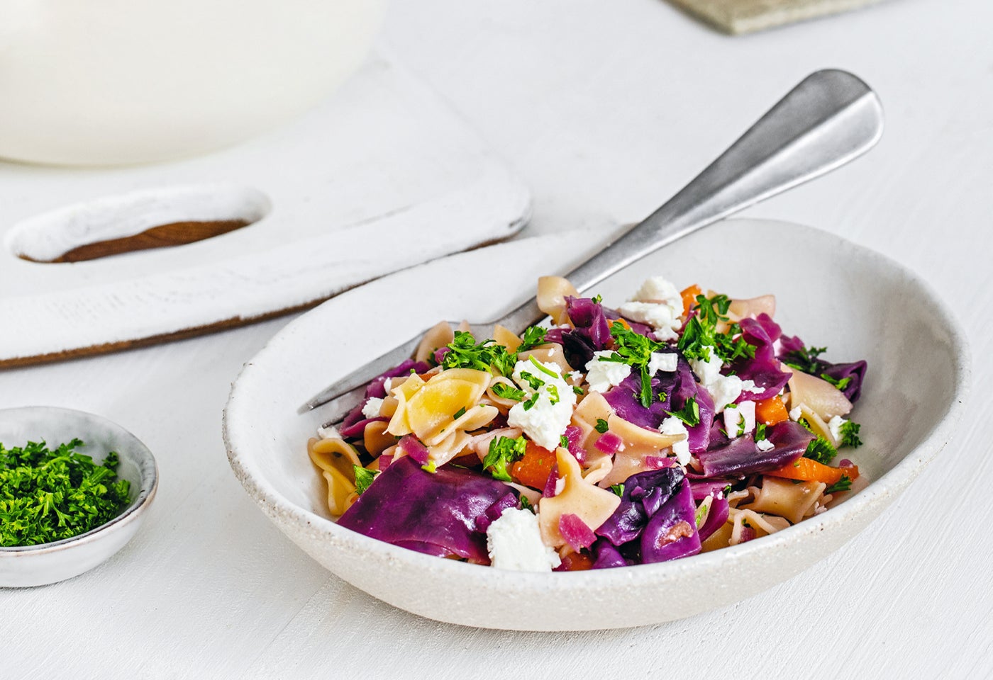 Kürbis-Rotkraut-Fleckerl mit Feta