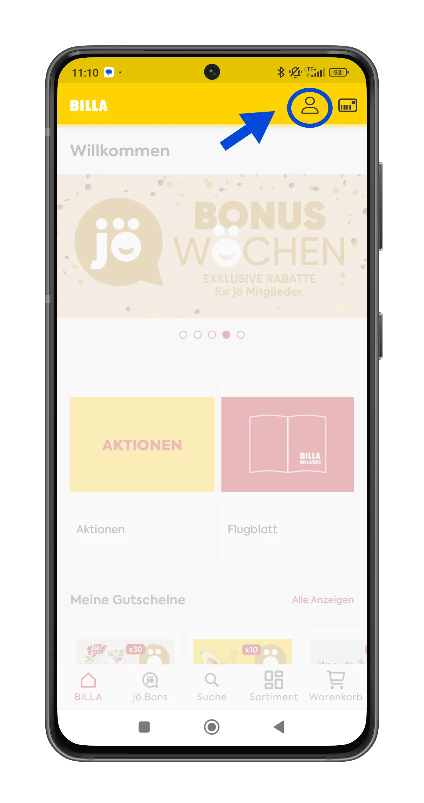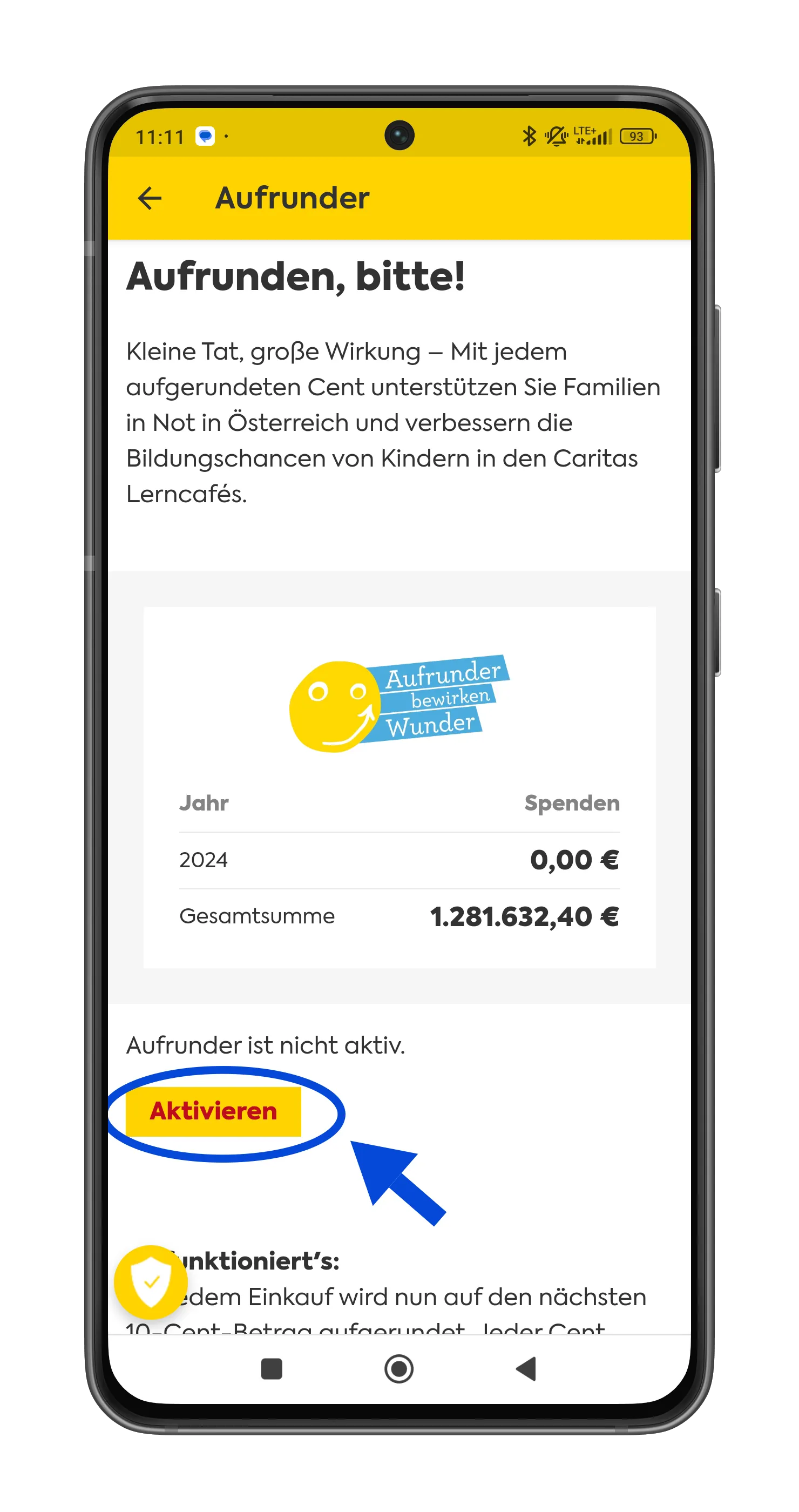 Dauerhaft „Aufrunden“ in der BILLA App aktivieren