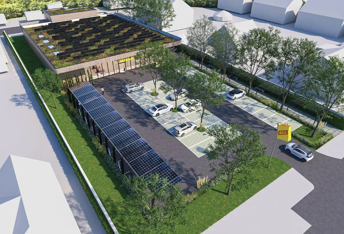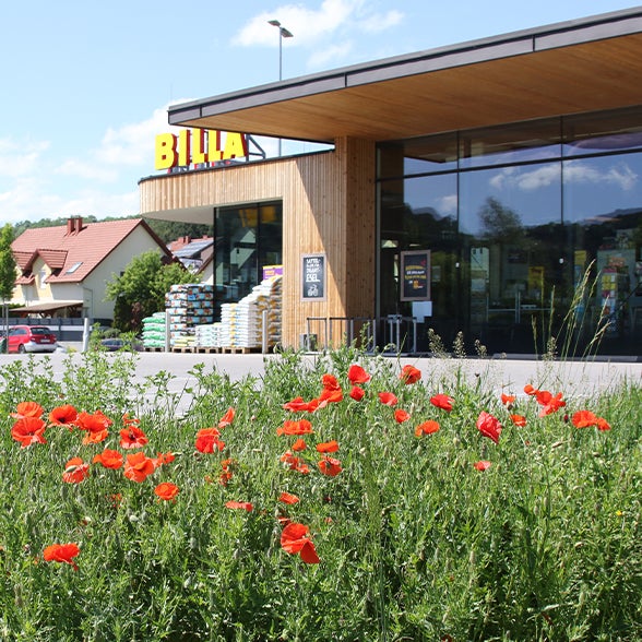 Ein besonderes Highlight ist unser Markt in der Pilotengasse 76 im 22. Wiener Gemeindebezirk. Dieser wurde mehrfach für seine nachhaltige Bauweise ausgezeichnet und setzt Maßstäbe in puncto Klimaschutz und Biodiversität. Hier stellen wir ihn vor.