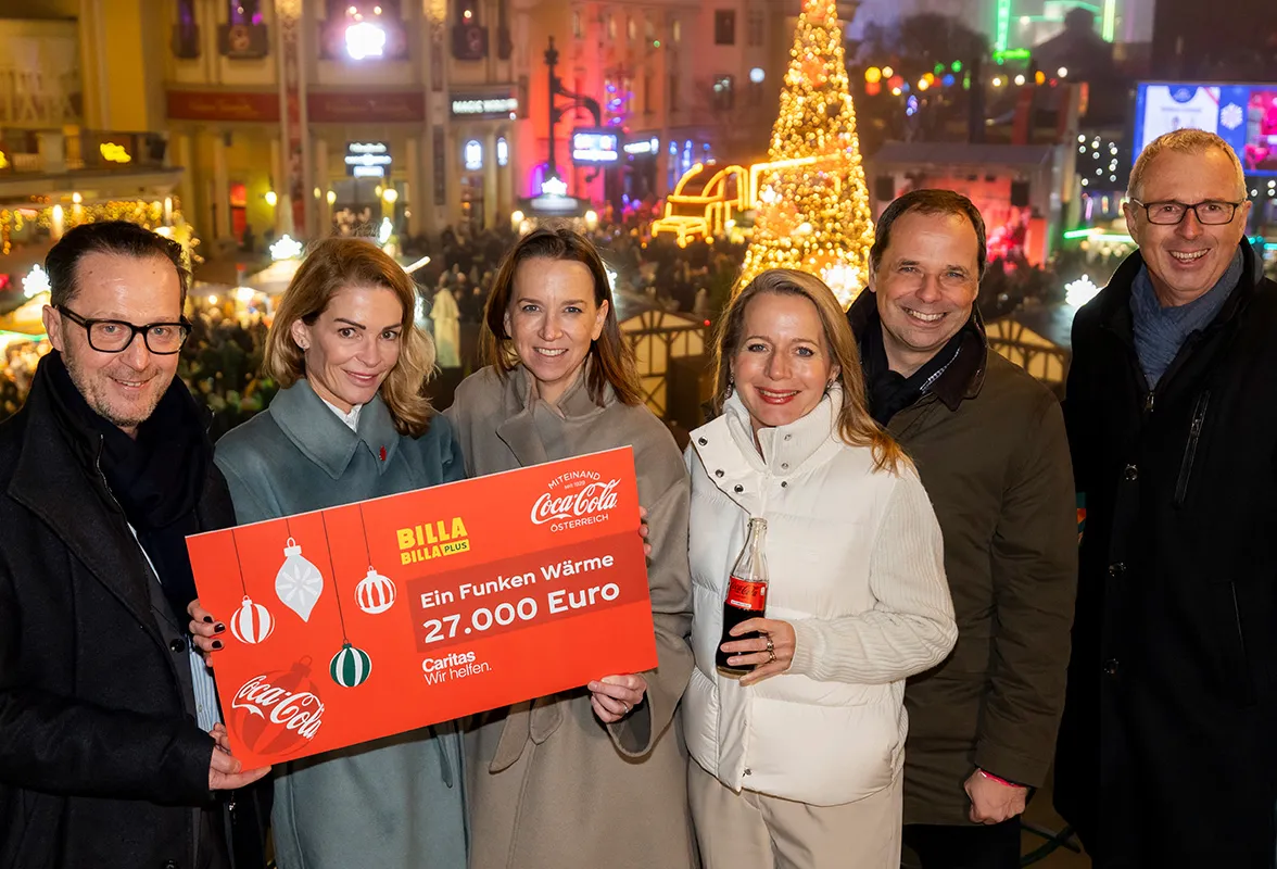 Im Rahmen einer besonderen Partnerschaft zwischen BILLA, Coca-Cola und Caritas wurde von 6.11 bis 19.11.2025 pro verkaufter Flasche zugunsten der Aktion „Ein Funken Wärme“ gespendet.