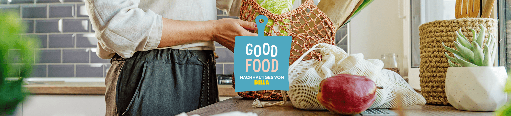 Good Food ist Essen das gut tut – uns selbst, unserer Umwelt, dem Klima und den Tieren und Menschen. Wir möchten allen einen Zugang zu bewusstem Genuss geben und fördern deswegen gesunde und nachhaltige Ernährung durch das BILLA-Lebensmittelsortiment. Unseren Kund:innen soll es so einfach wie möglich gemacht werden, sich bewusst und nachhaltig zu ernähren und das auch noch mit bestem Geschmack. BILLA bietet ein großes Sortiment an nachhaltigen, innovativen und zukunftsorientierten Lebensmitteln an. Und durch Kommunikation und klare Kennzeichnung werden die wichtigsten Informationen schnell und einfach übermittelt. Die attraktive Preispolitik soll ein nachhaltigerer Lebensstil leistbar machen.