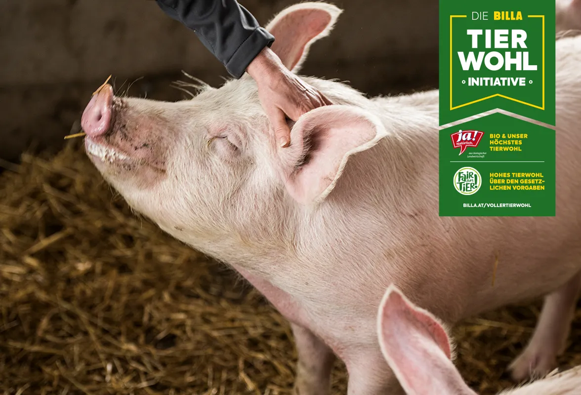 In Österreich gelten hohe Tierwohl-Standards, die uns von BILLA nicht hoch genug sind. Mehr Tierwohl als das Gesetz verlangt mit „Fair zum Tier!“ und unser höchstes Tierwohl mit Ja! Natürlich. Und das alles selbstverständlich zu 100 % aus Österreich. Das heißt zum Beispiel: