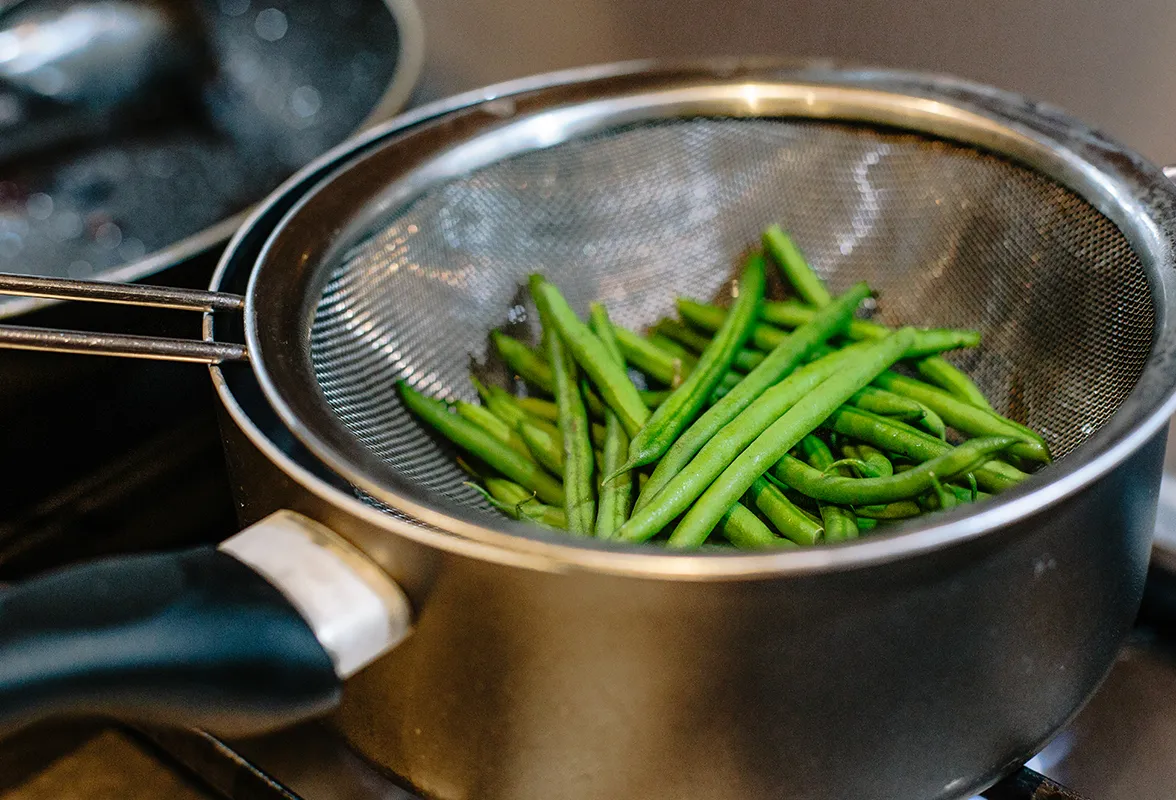 Wer keinen Dampfgarer oder Backofen mit Dampfgarfunktion besitzt, kann ein Sieb nutzen. Einfach in einem Topf Wasser zum Kochen bringen. Jetzt wird das Sieb mit den zu garenden Lebensmitteln in den Topf gehängt und alles mit einem Topfdeckel abgedeckt. Wichtig: Das Wasser darf das Sieb mit den Lebensmitteln nicht berühren.
