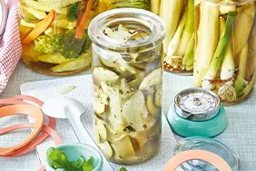 Schon gewusst? Die Zucchini ist ein kälteempfindliches Lebensmittel und sollte zwar kühl, aber nicht zu kalt gelagert werden. In der Speisekammer hält das Gemüse bis zu zwei Wochen – aber wenn's im Sommer auch drinnen warm wird, bietet sich das unterste Kühlschrankfach an. Bei einer Temperatur von 8 bis 10 °C bleibt die Zucchini ungefähr eine Woche frisch. Es ist darauf zu achten, sie nicht mit Tomaten oder Äpfeln aufzubewahren, da diese die Zucchini schneller welken und runzelig werden lassen.