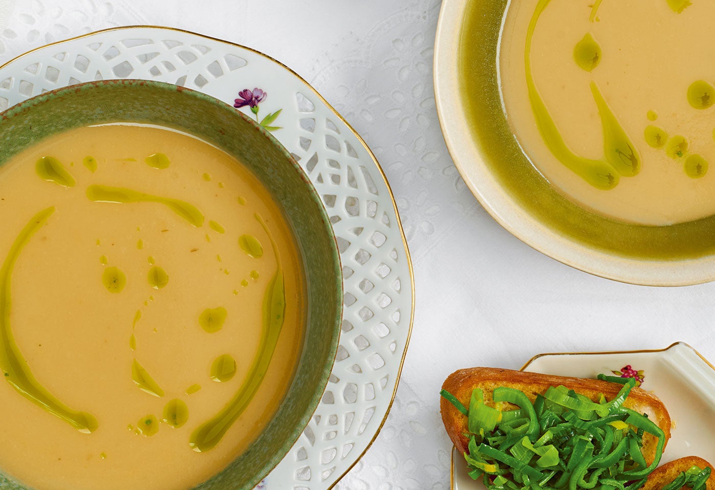 Miso-Erdäpfel-Lauch-Suppe mit Schnittlauchöl