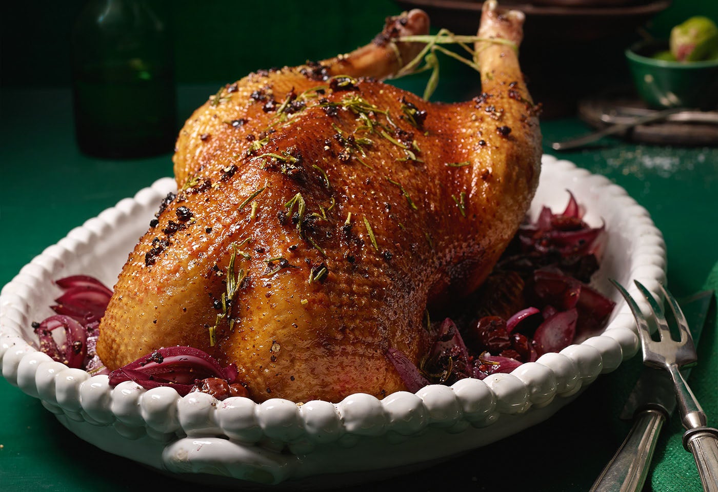 Gebeizte Gans mit Nuss-Brot-Füllung und Kohlsprossen