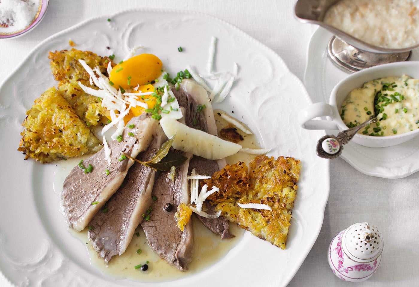 Tafelspitz mit Semmelkren, Schnittlauchsauce und Rösti