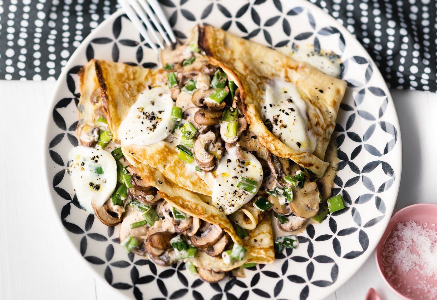 Palatschinken mit Pilzen und Mozzarella