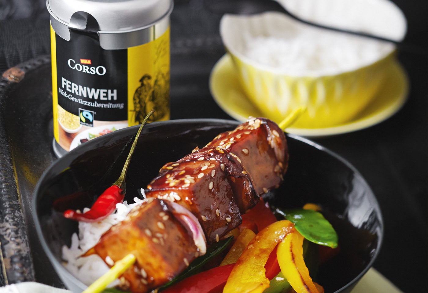 Tofu-Spieße mit Wokgemüse
