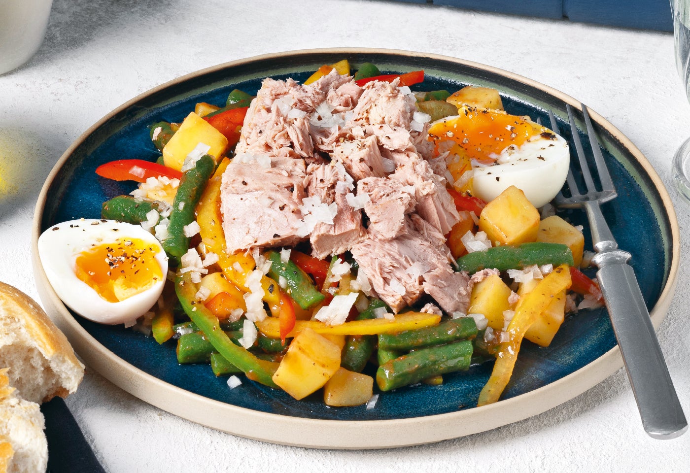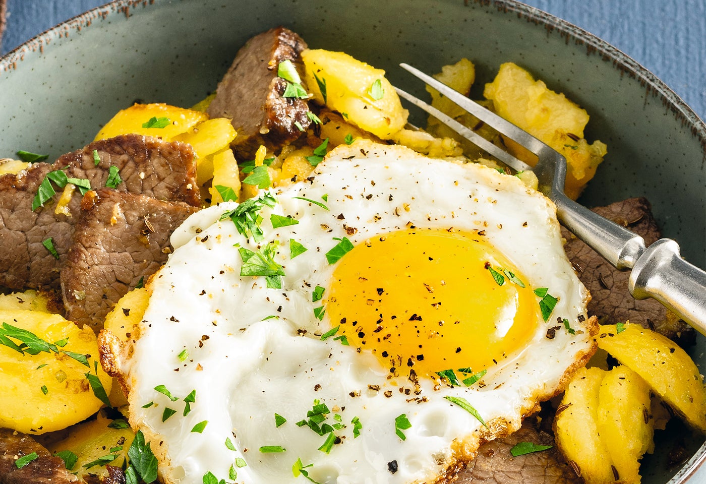 Hendlfilet mit Erdäpfeln, Birnen und Salat