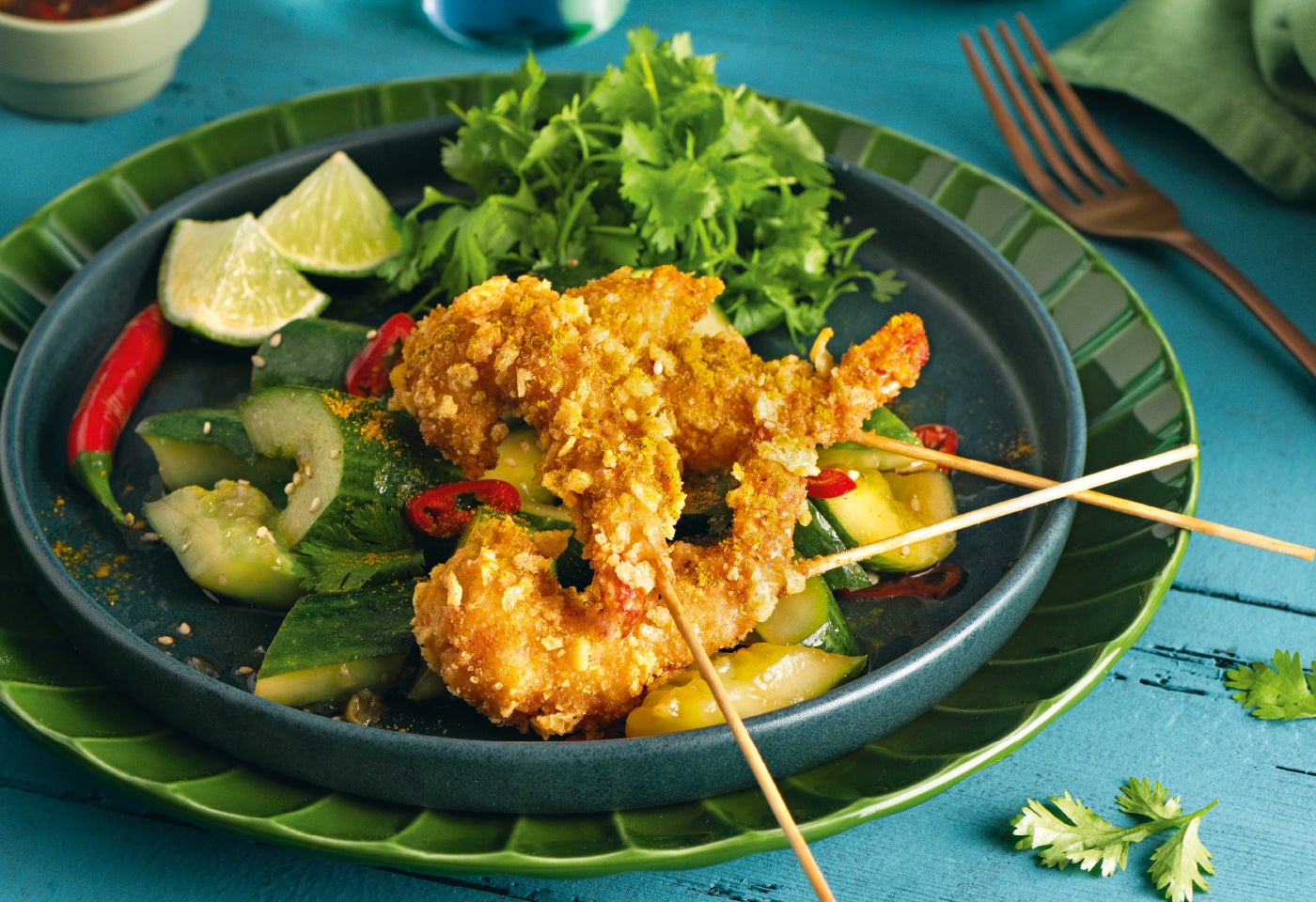Crispy Garnelenspieße mit chinesischem Gurkensalat